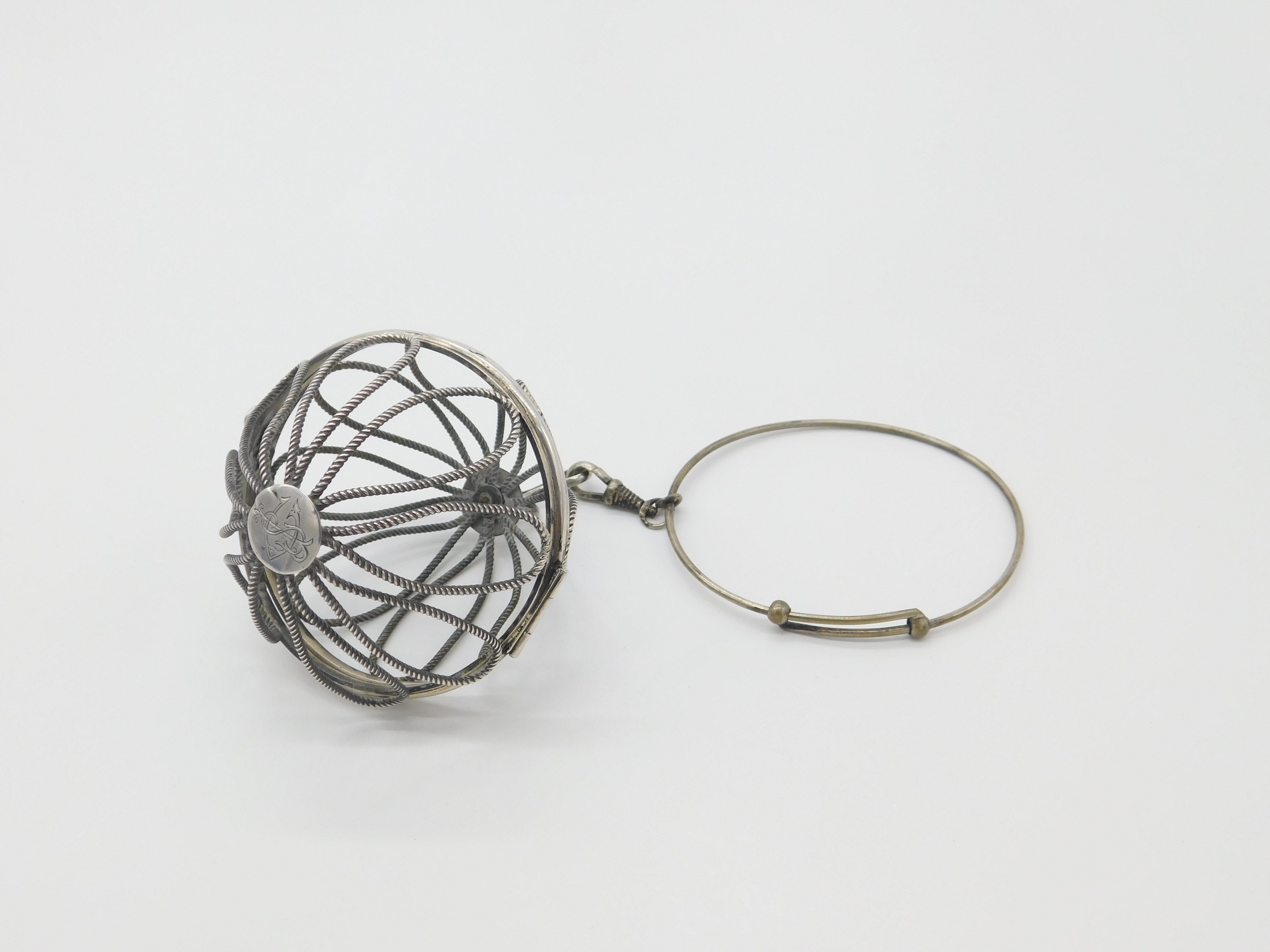 Victorian Sterling Silver Wool Skein Ball Sewing Bangle Bracelet Antique 1880