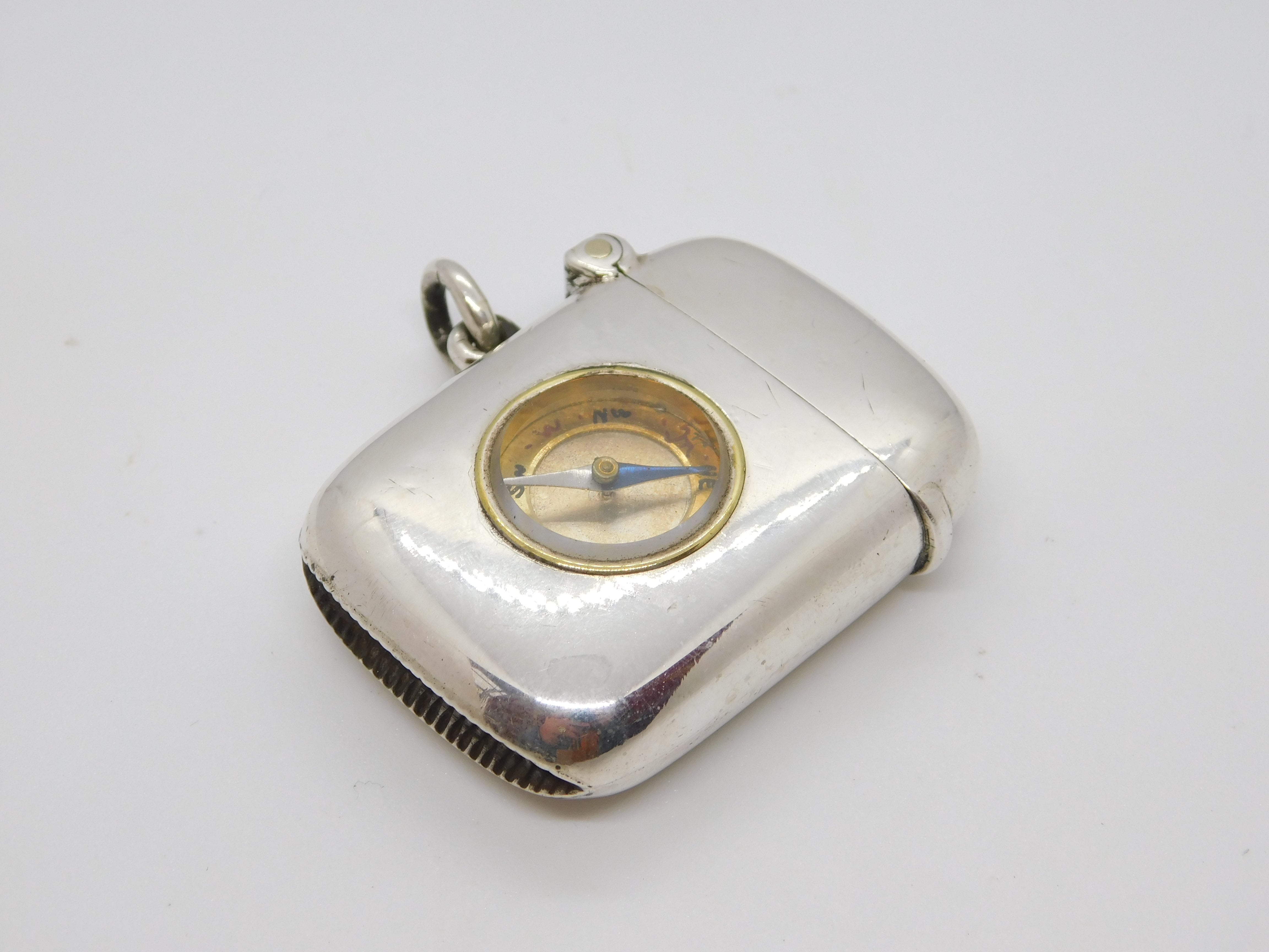 Victorian Sterling Silver Working Compass Campaign Vesta Case 1901 Antique