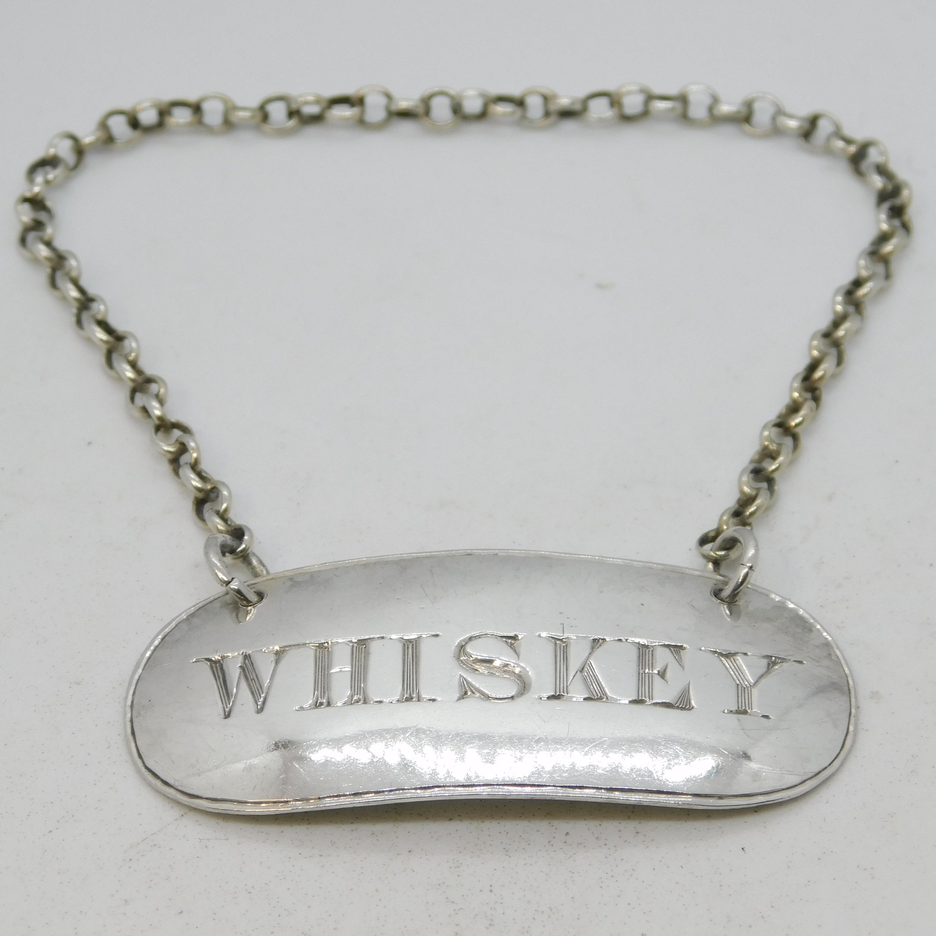 Victorian Sterling Silver Whisky Decanter Label Antique 1870 Birmingham G. Unite