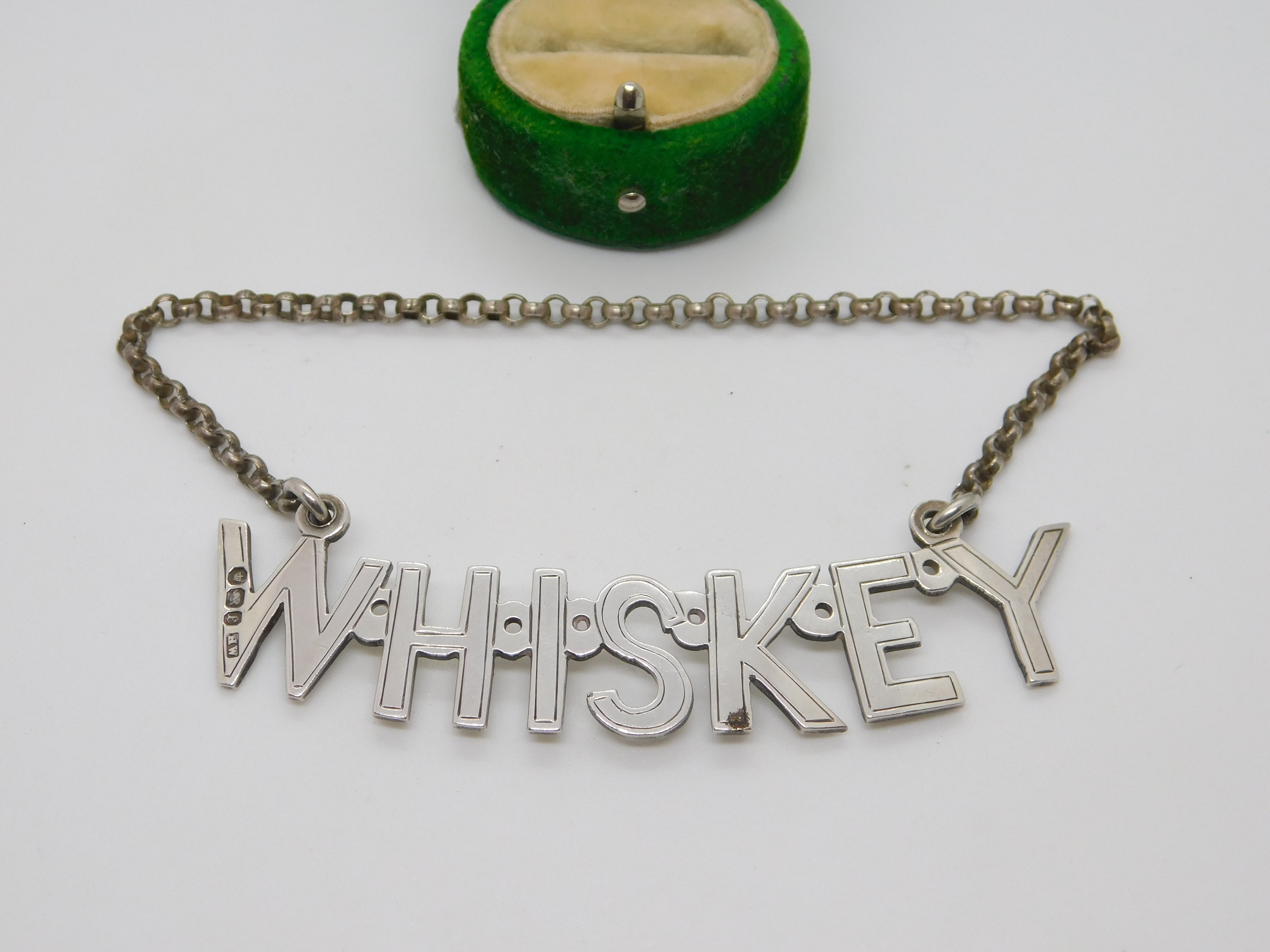 Victorian Sterling Silver Whisky Mis-Spelt Decanter Label Antique 1892 London