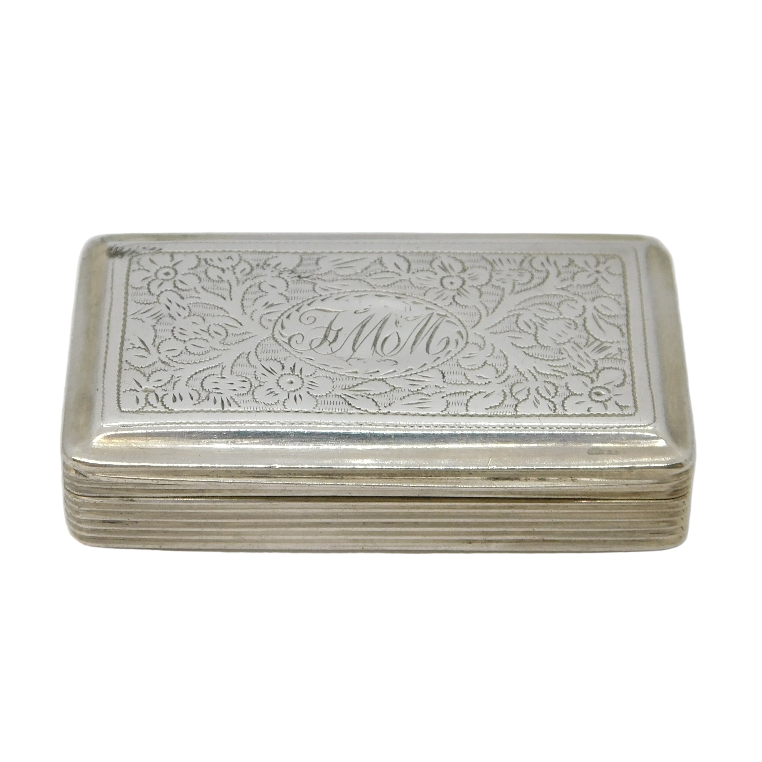 William IV Sterling Silver Floral Pattern Snuff Box Antique 1835 Birmingham