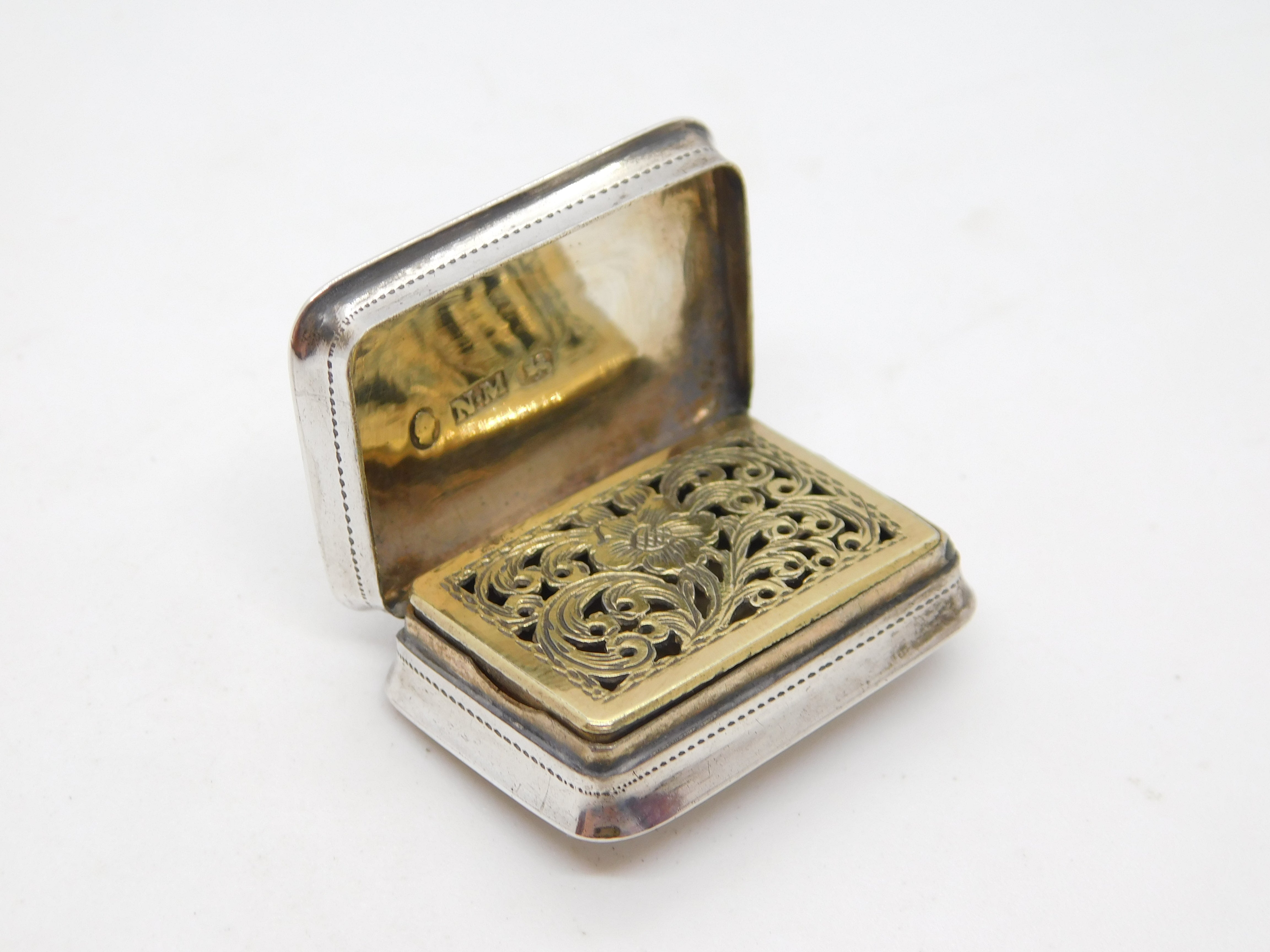 William IV Sterling Silver Vinaigrette Antique 1835 Birmingham Nathaniel Mills