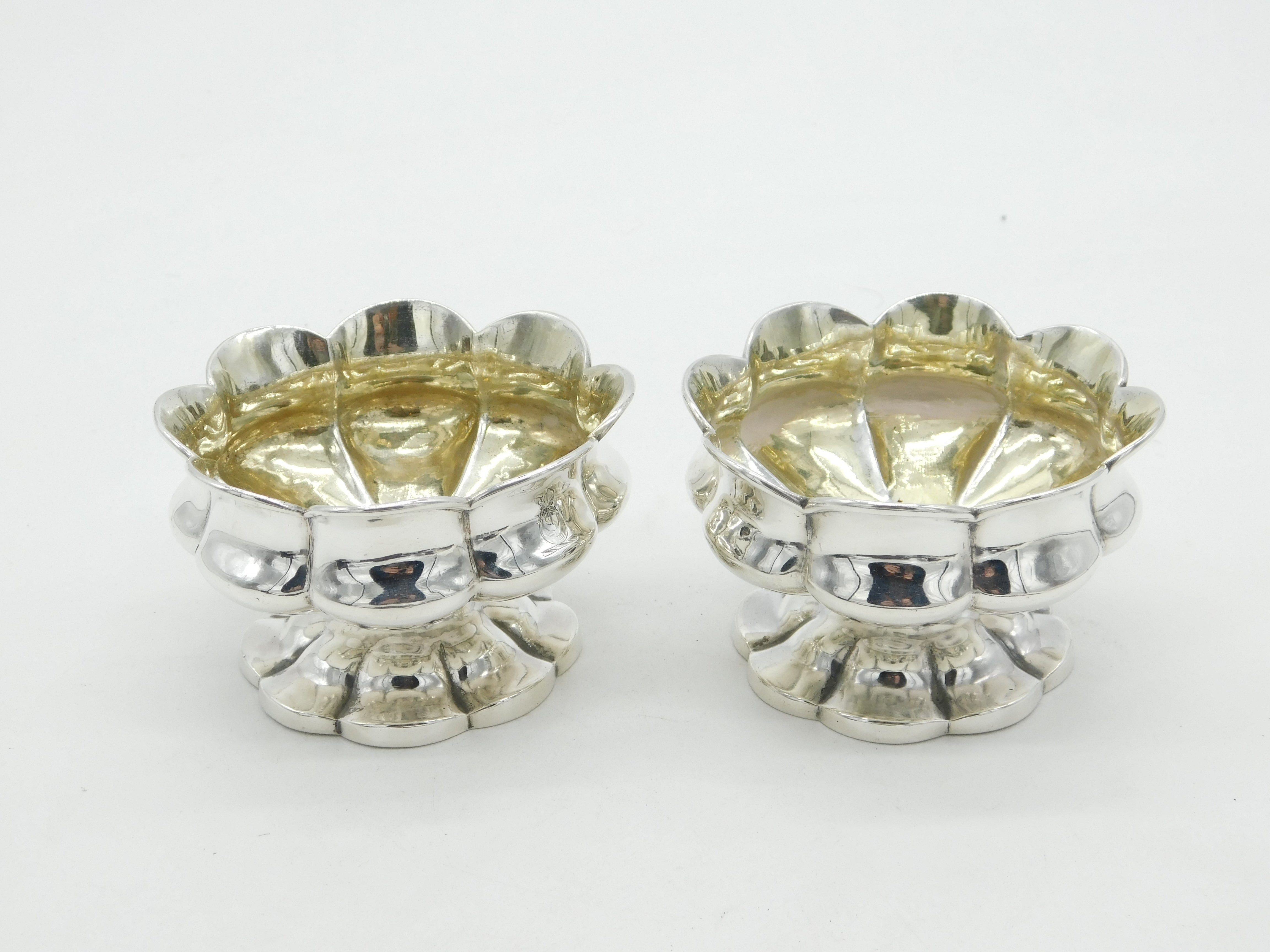 William IV Sterling Silver Floral Salt Cellars Pair Antique 1832 London Georgian