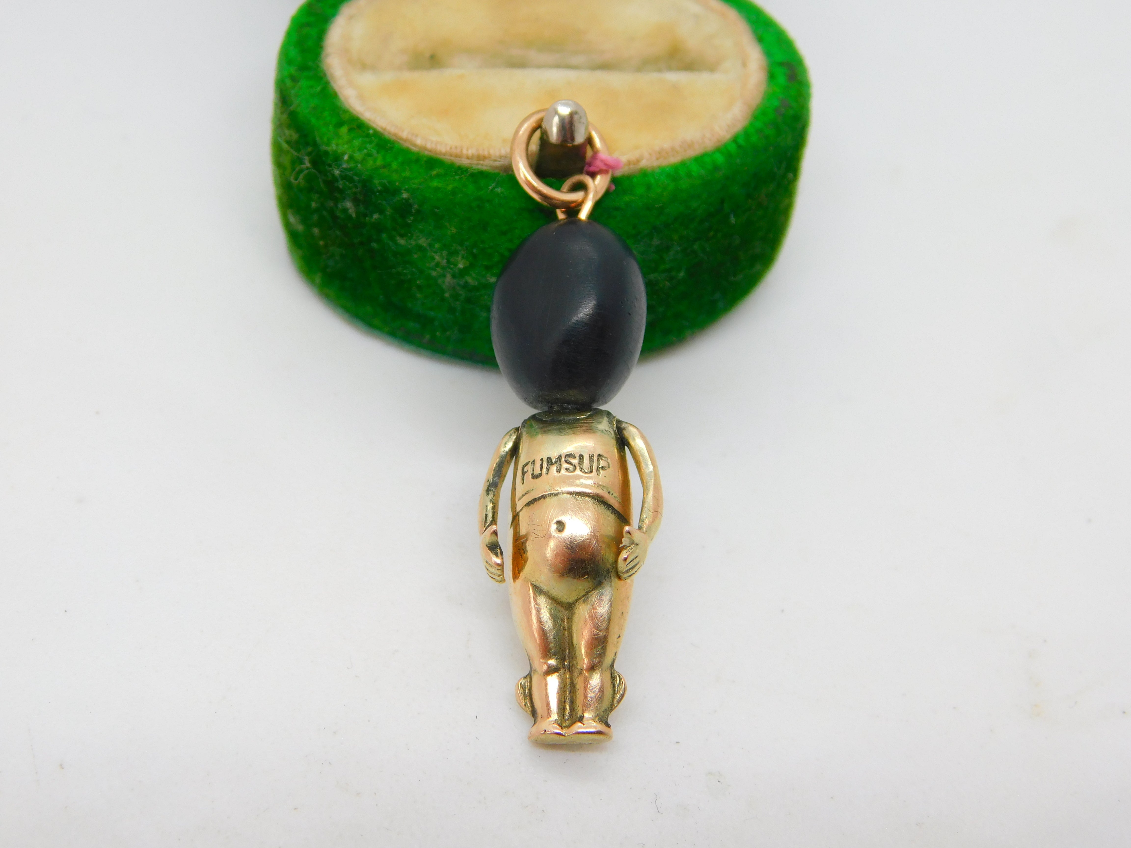 WW1 9ct Yellow Gold Wooden Head 'Fumsup' Good Luck Charm Antique c1915
