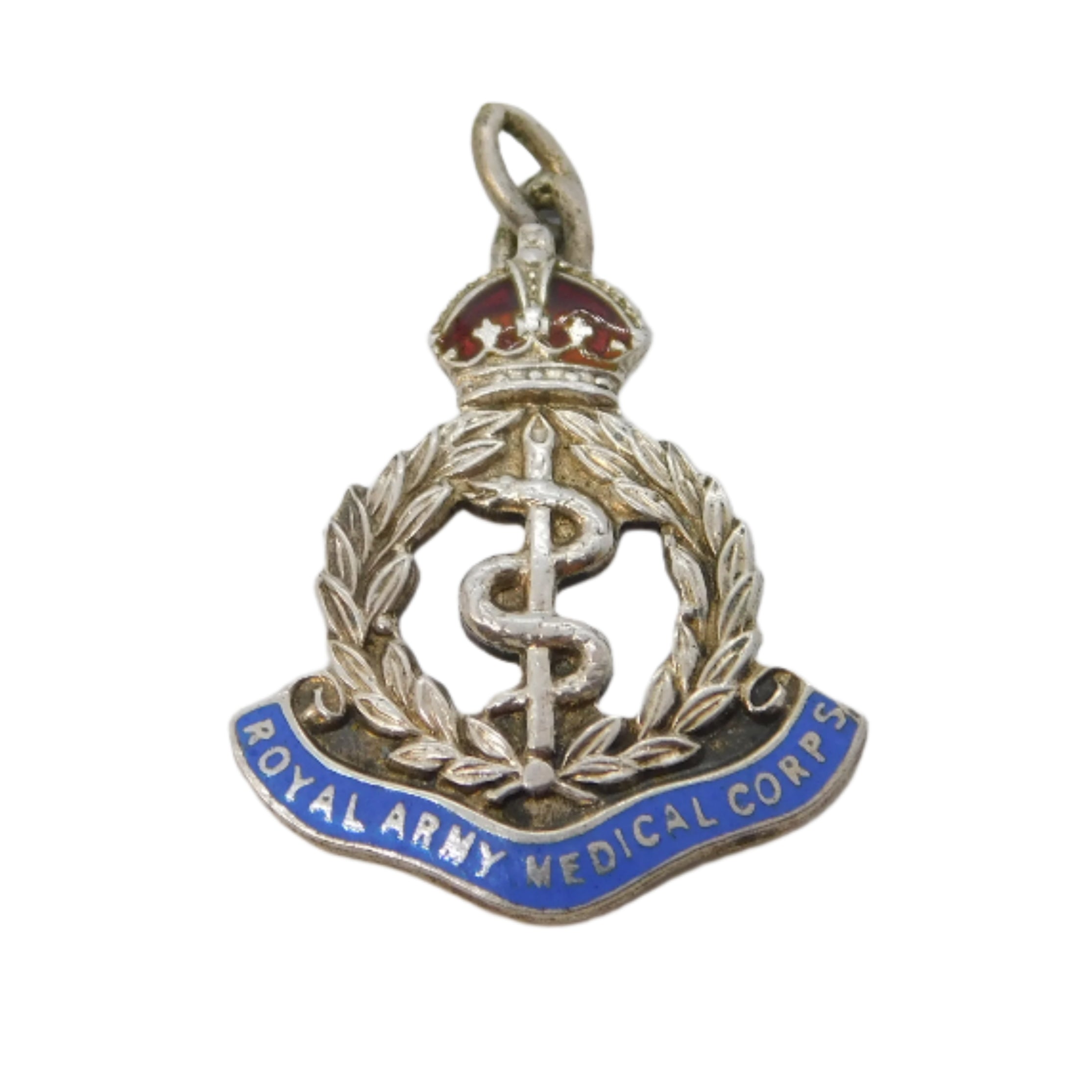 WWII Sterling Silver Enamel Royal Army Medical Corps Pendant Antique c1940