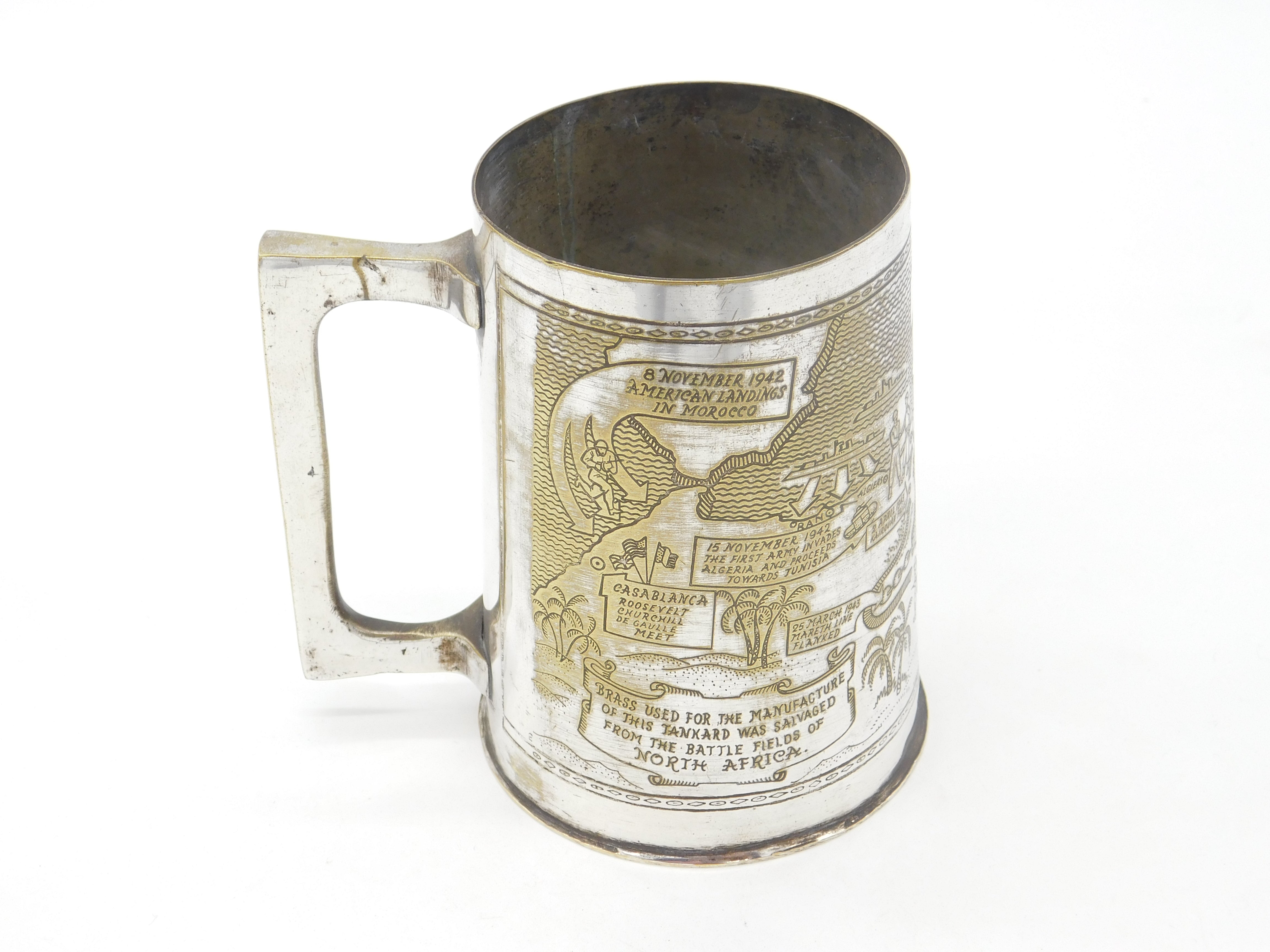 WWII Silver Plated Pint Tankard Detailing the Allied North Africa Campaign c1944