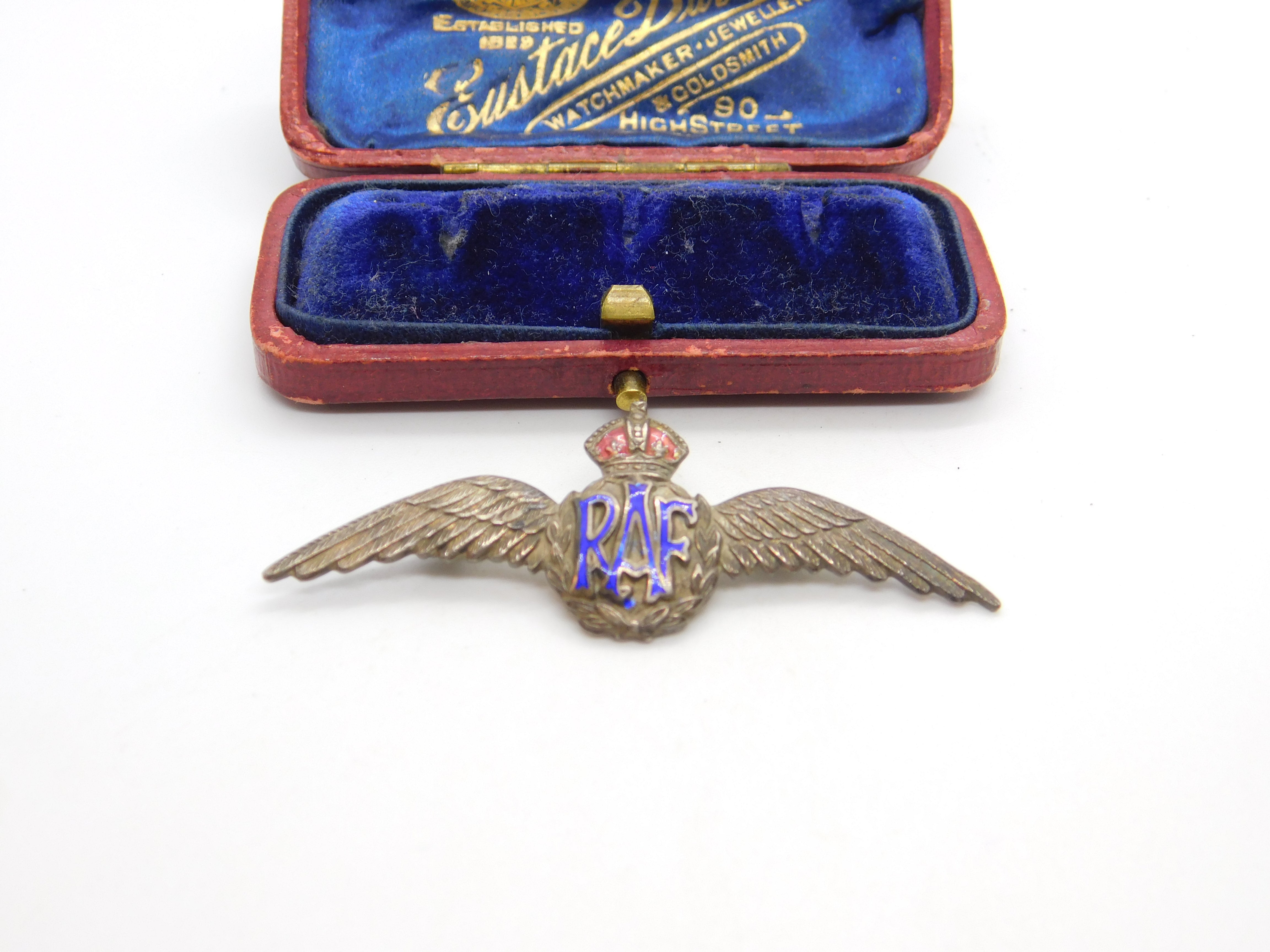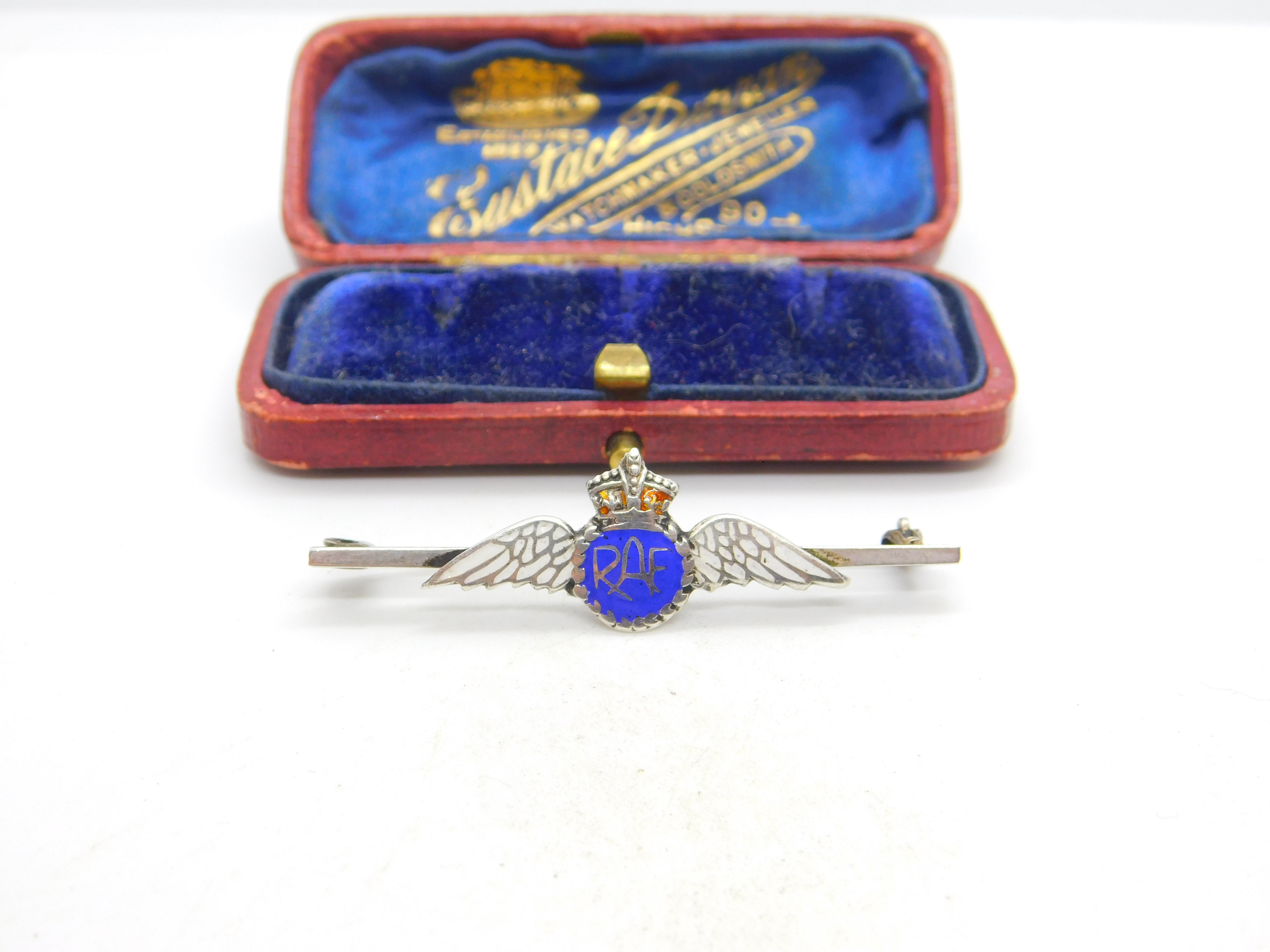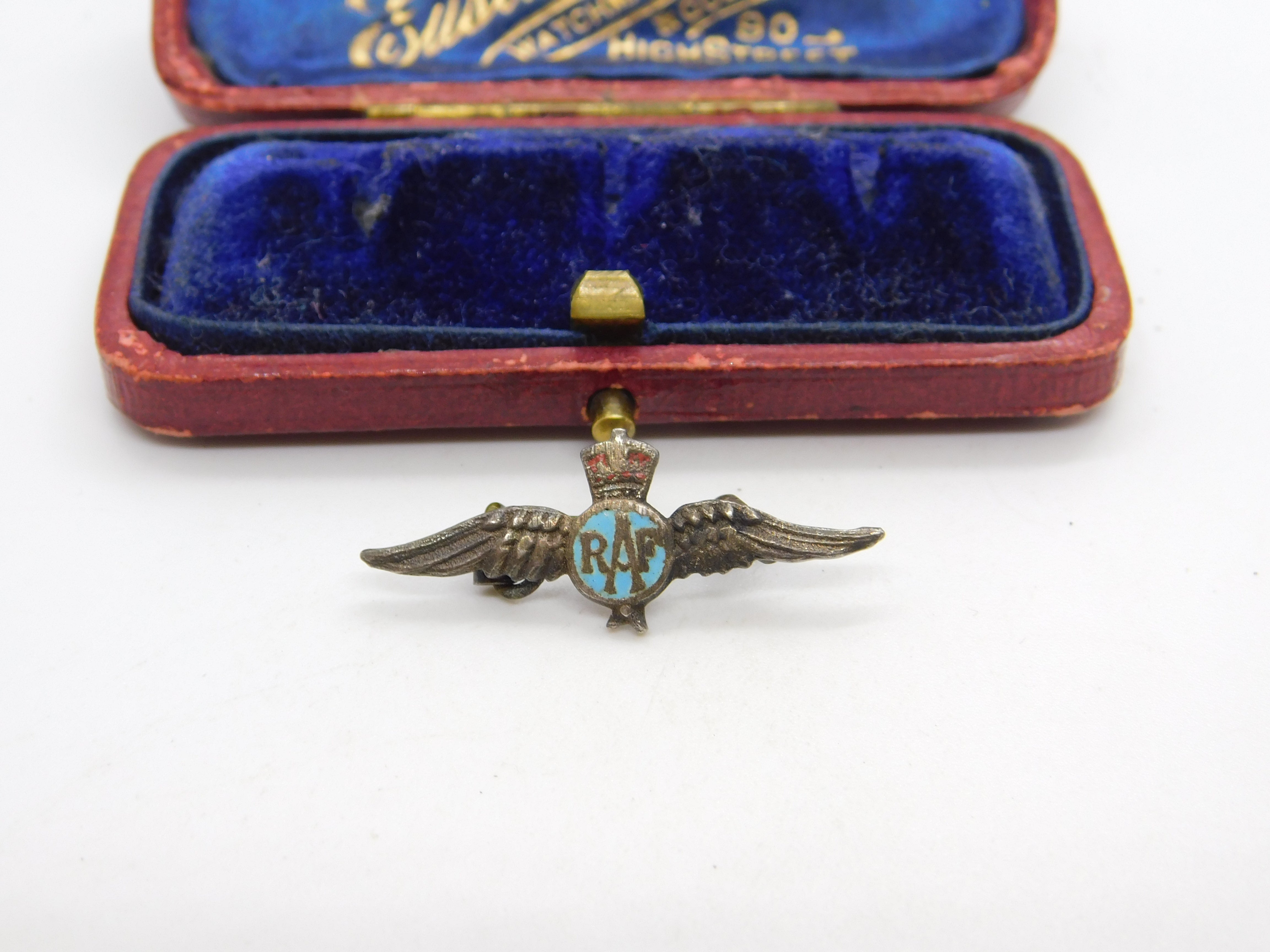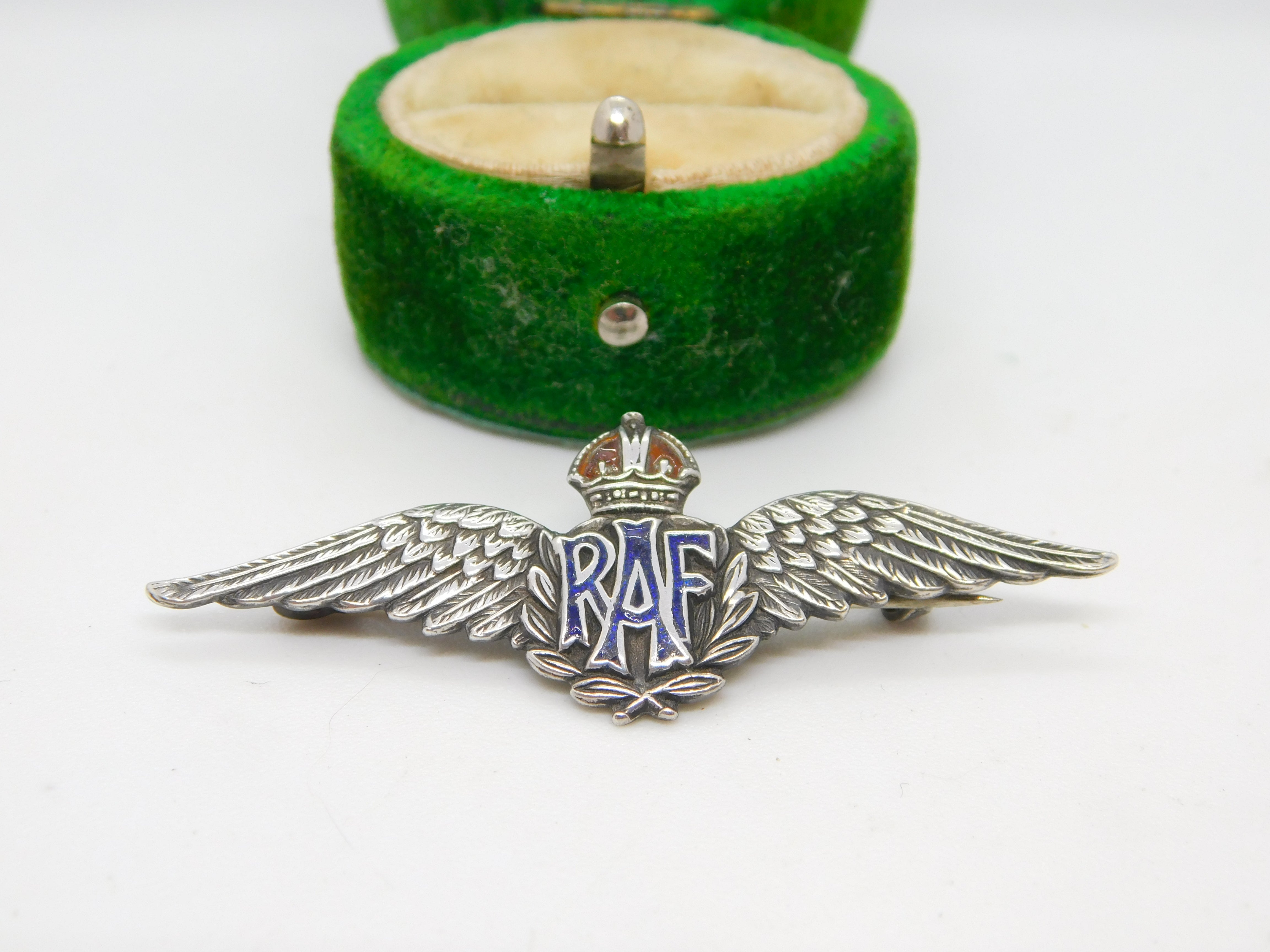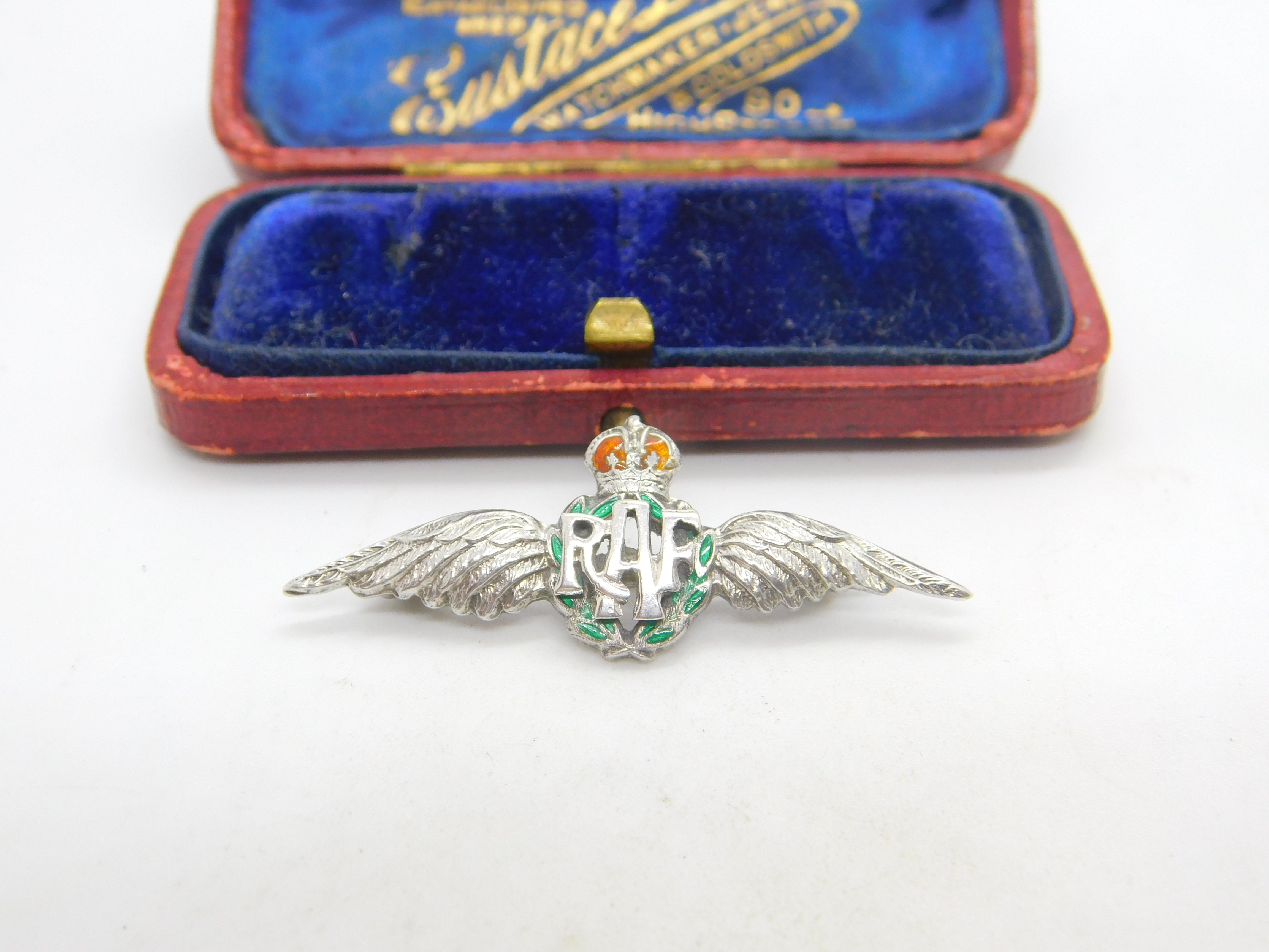 WWII Sterling Silver Enamel RAF Wings Sweetheart Brooch Antique c1940