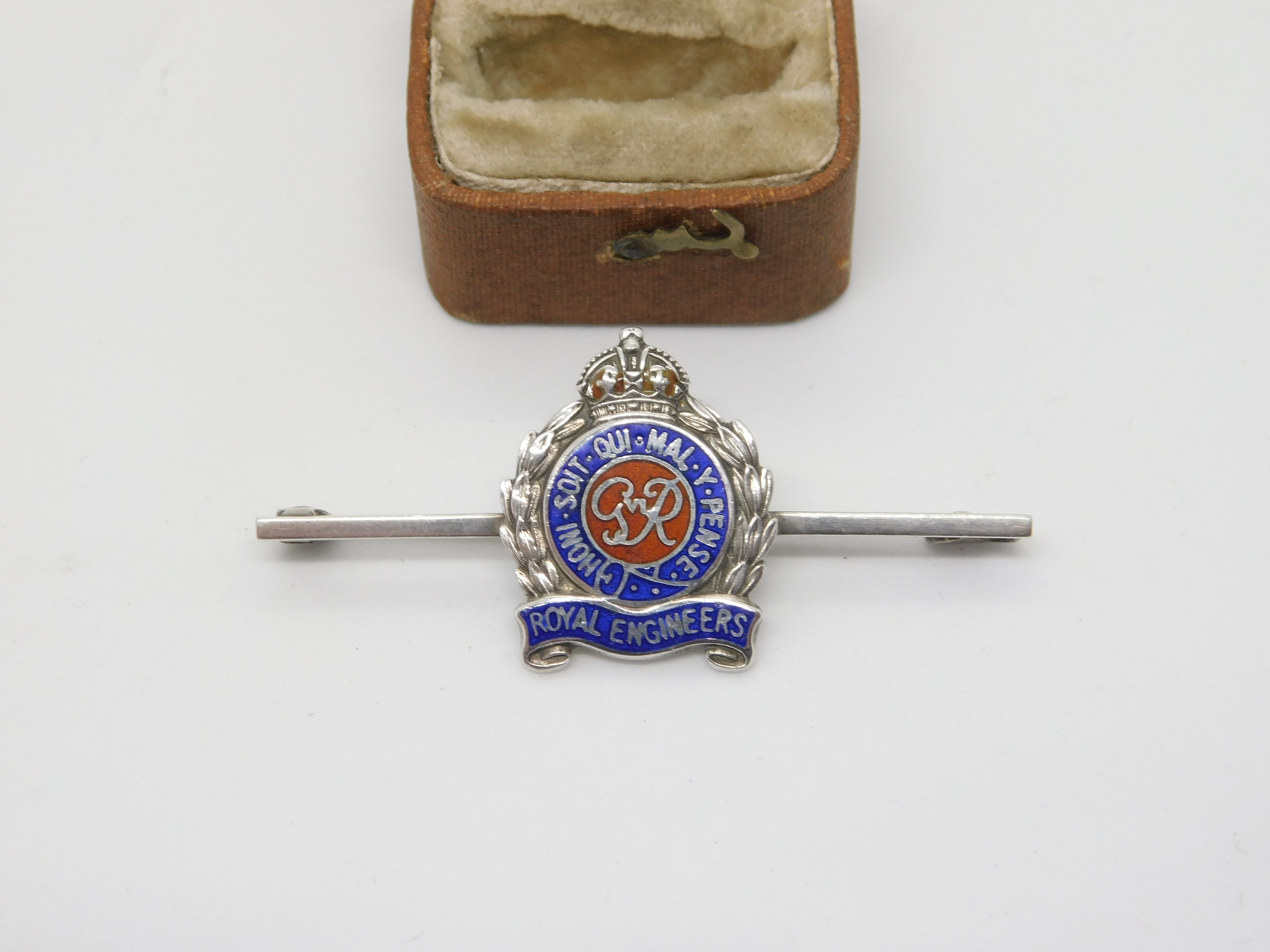 WWII Sterling Silver Enamel Royal Engineers Sweetheart Brooch c1940 Antique