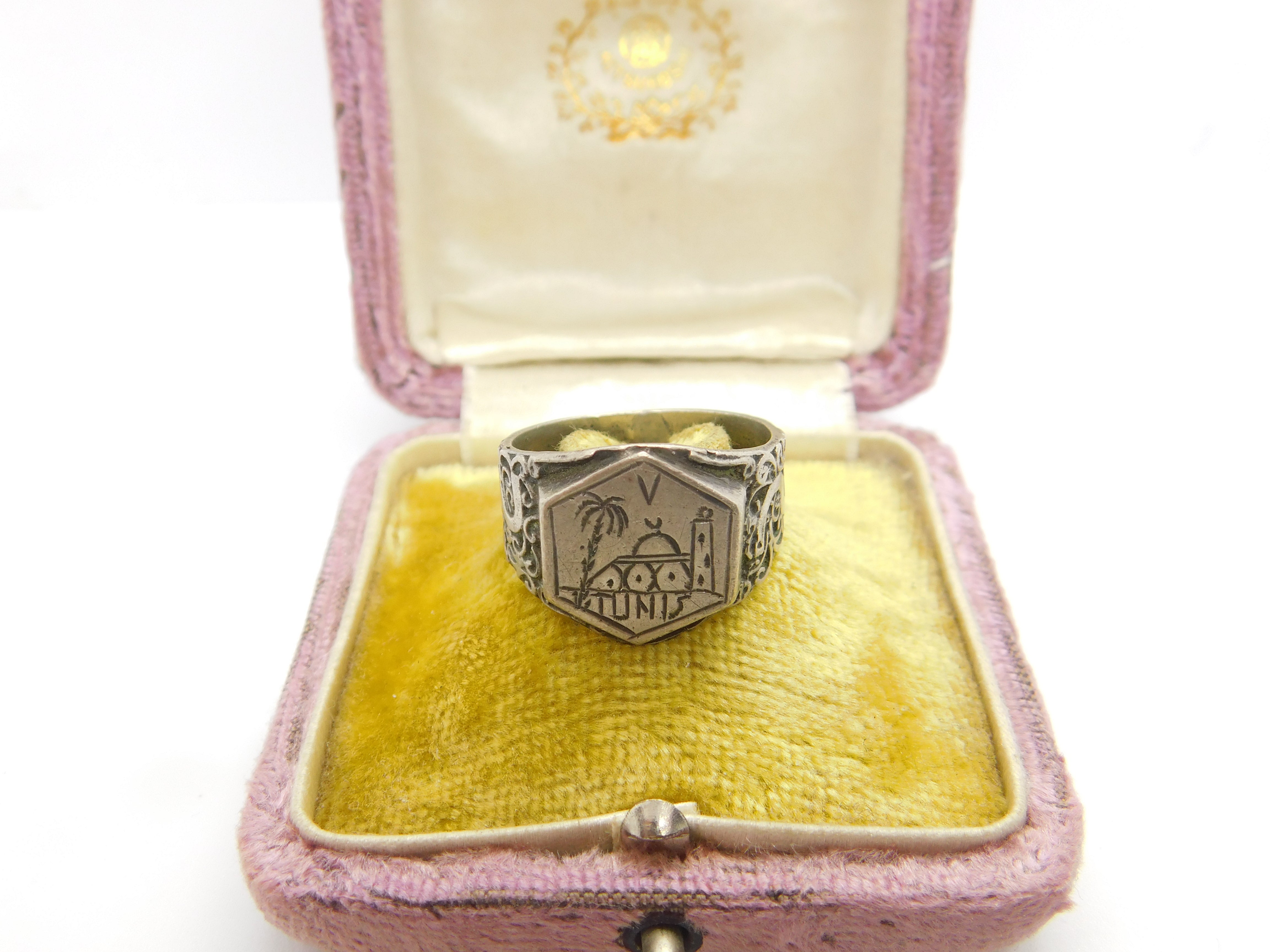 WWII Sterling Silver 'Tunis' Signet Ring Prisoner of War Antique c1945