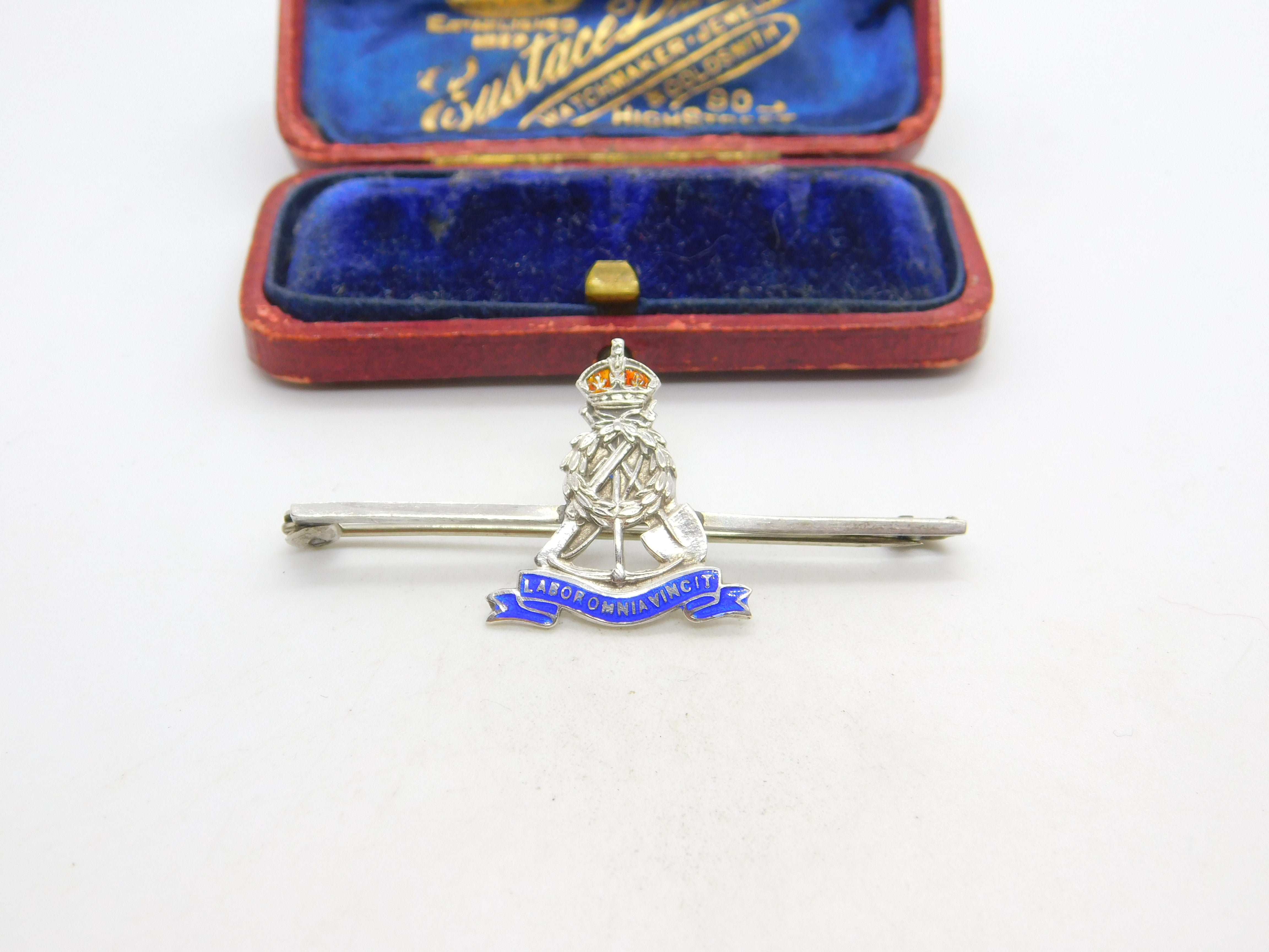 WWII Sterling Silver Enamel Royal Artillery Sweetheart Brooch c1940 Antique