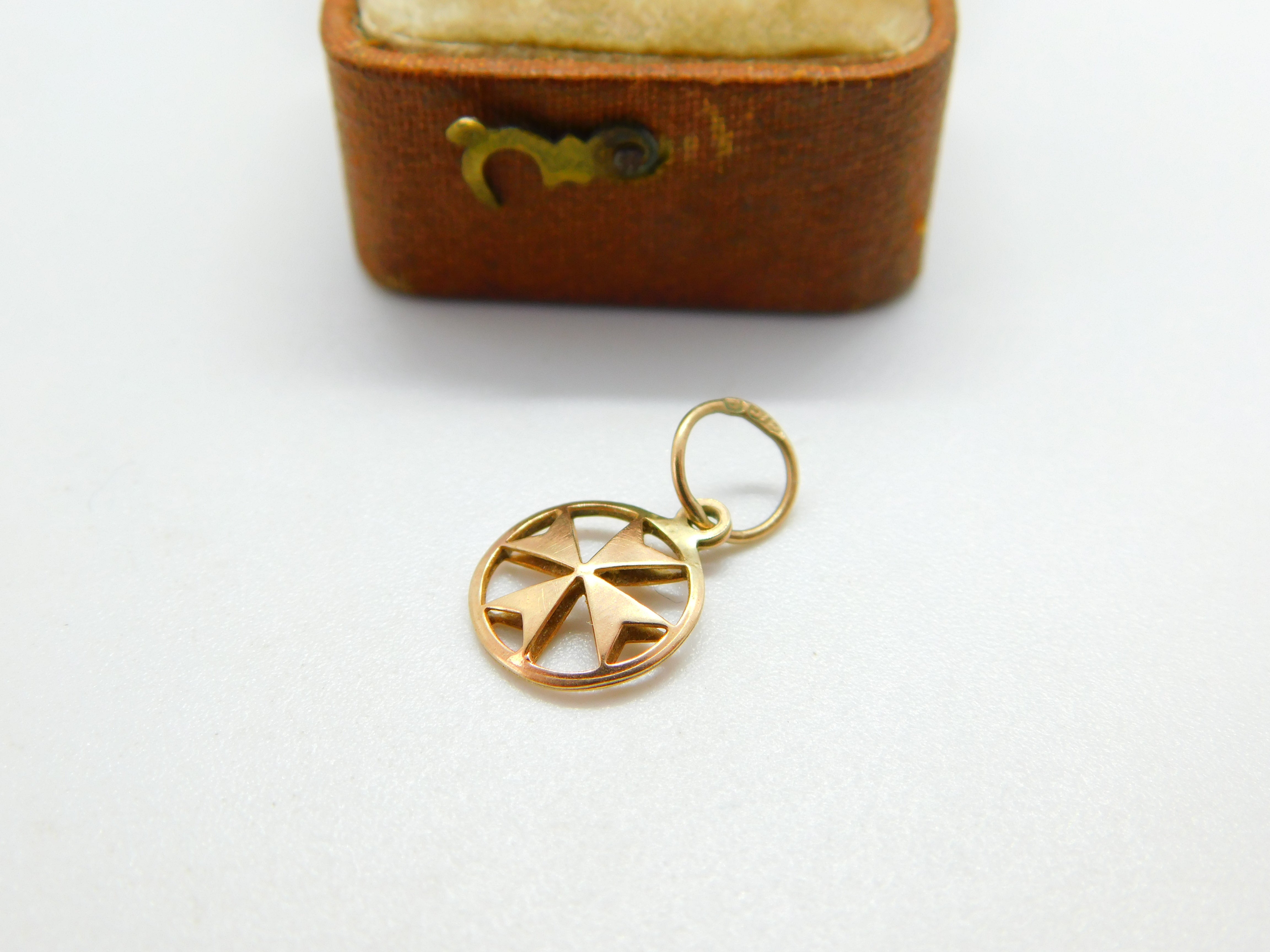 9ct Rose Gold Maltese Cross Drop Charm or Pendant Antique c1930 Art Deco