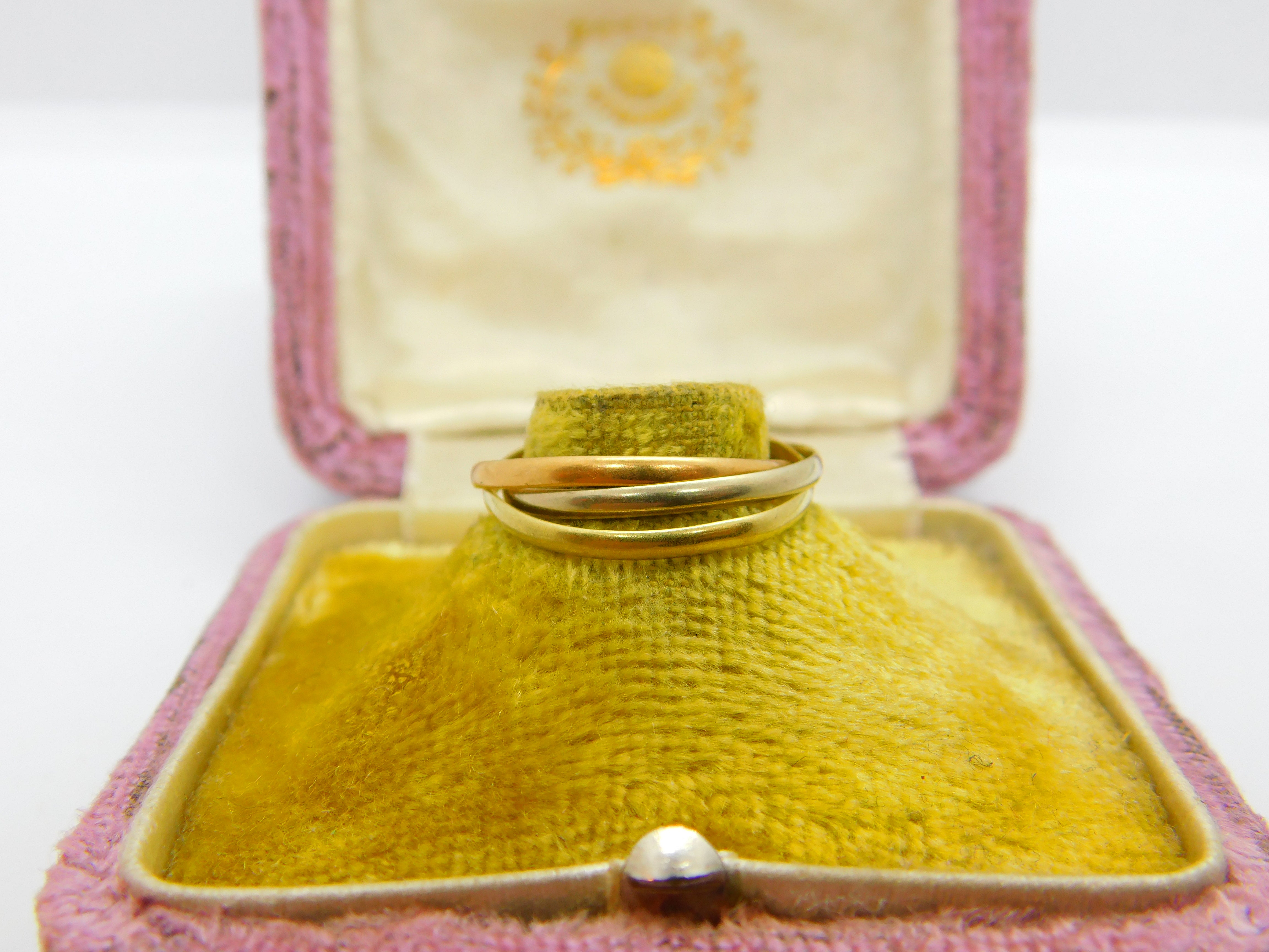 9ct Tri-Colour Gold Trinity Wedding Ring Antique c1930 Art Deco Size O UK