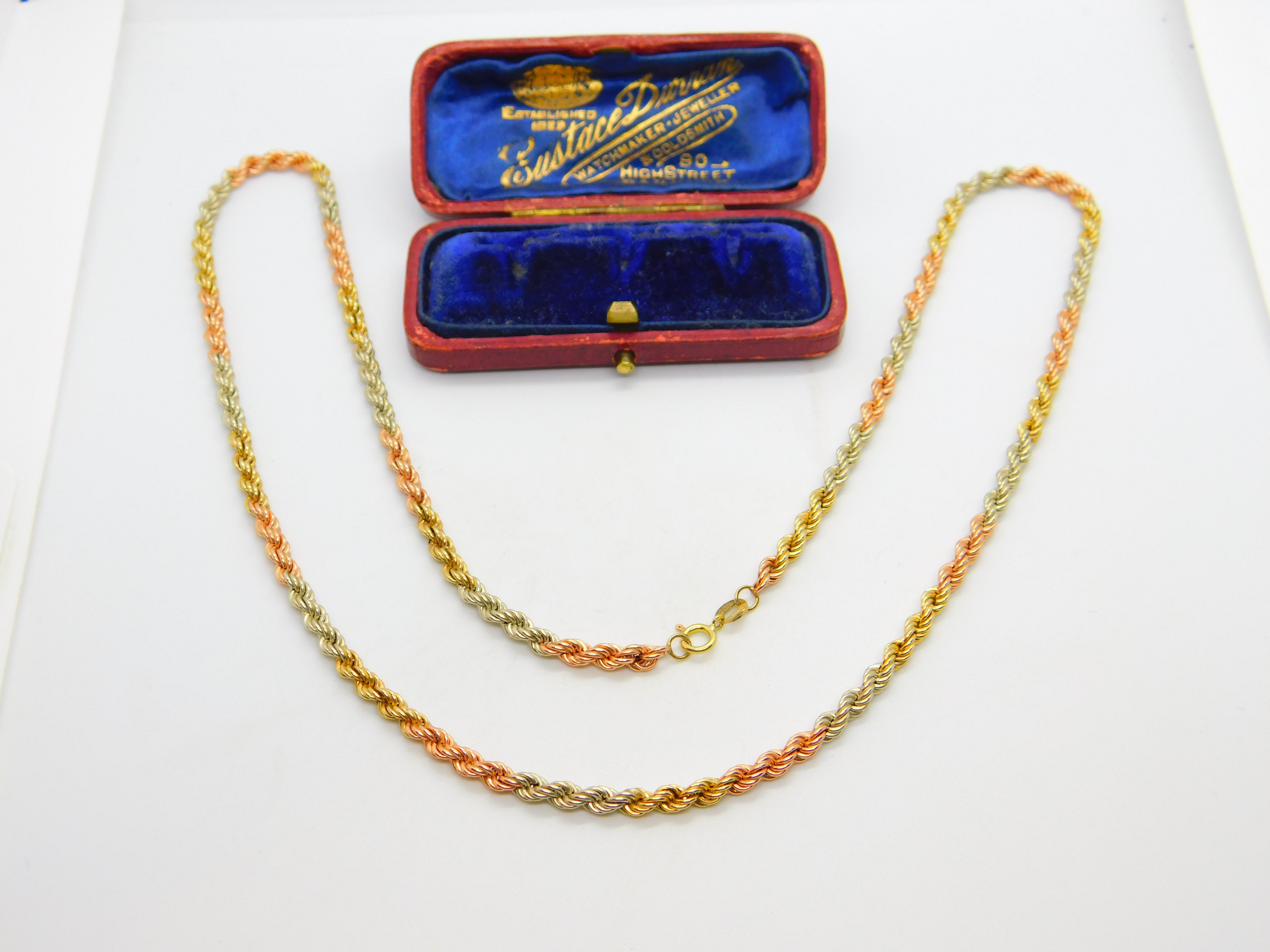 9ct Tri-Colour Gold Yellow, Rose, White Rope Chain Necklace 1995 London 22"