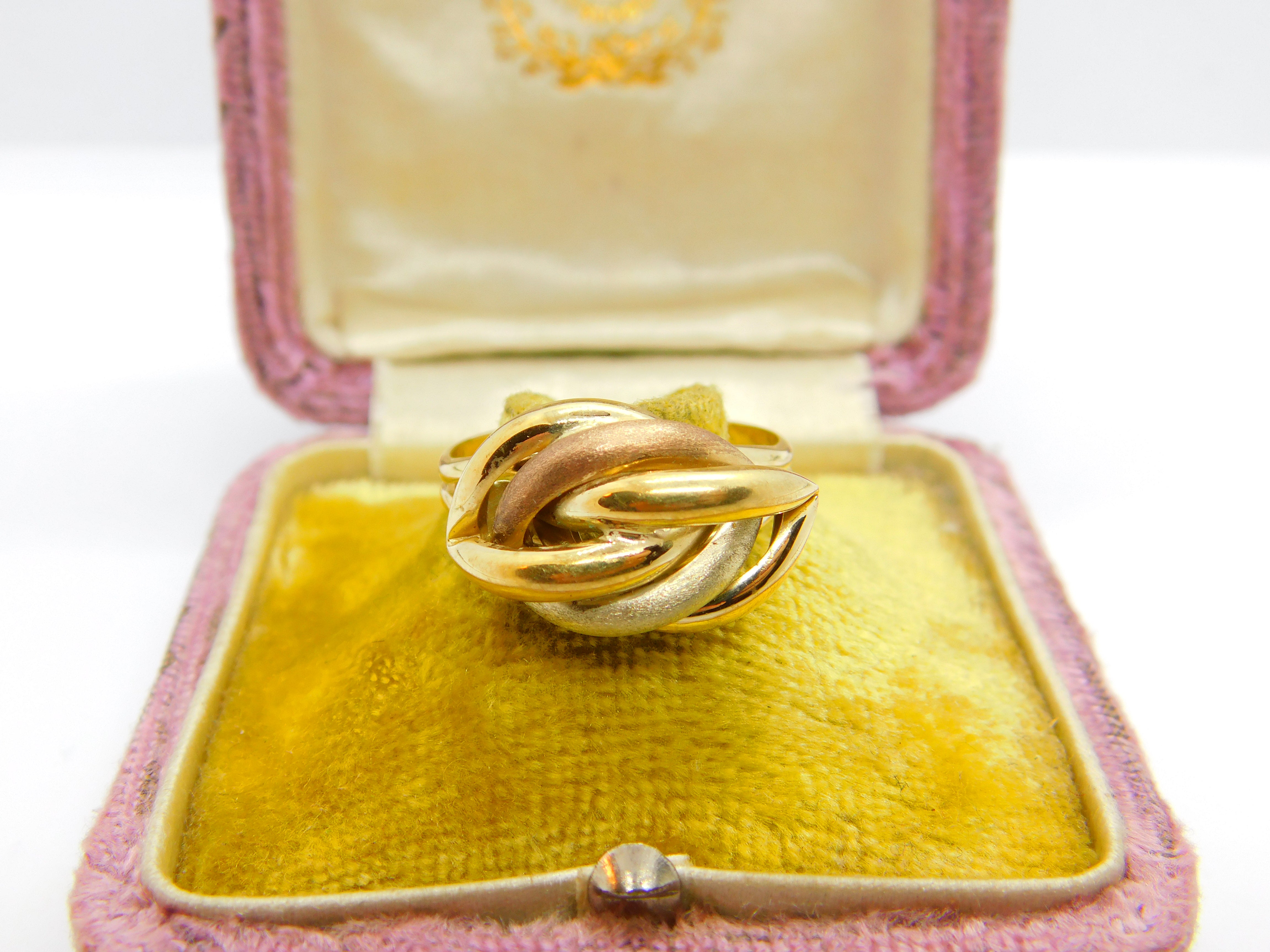 9ct Tri-Colour Gold Woven Knot Band Ring Vintage 2008 Birmingham Size U 1/2 UK