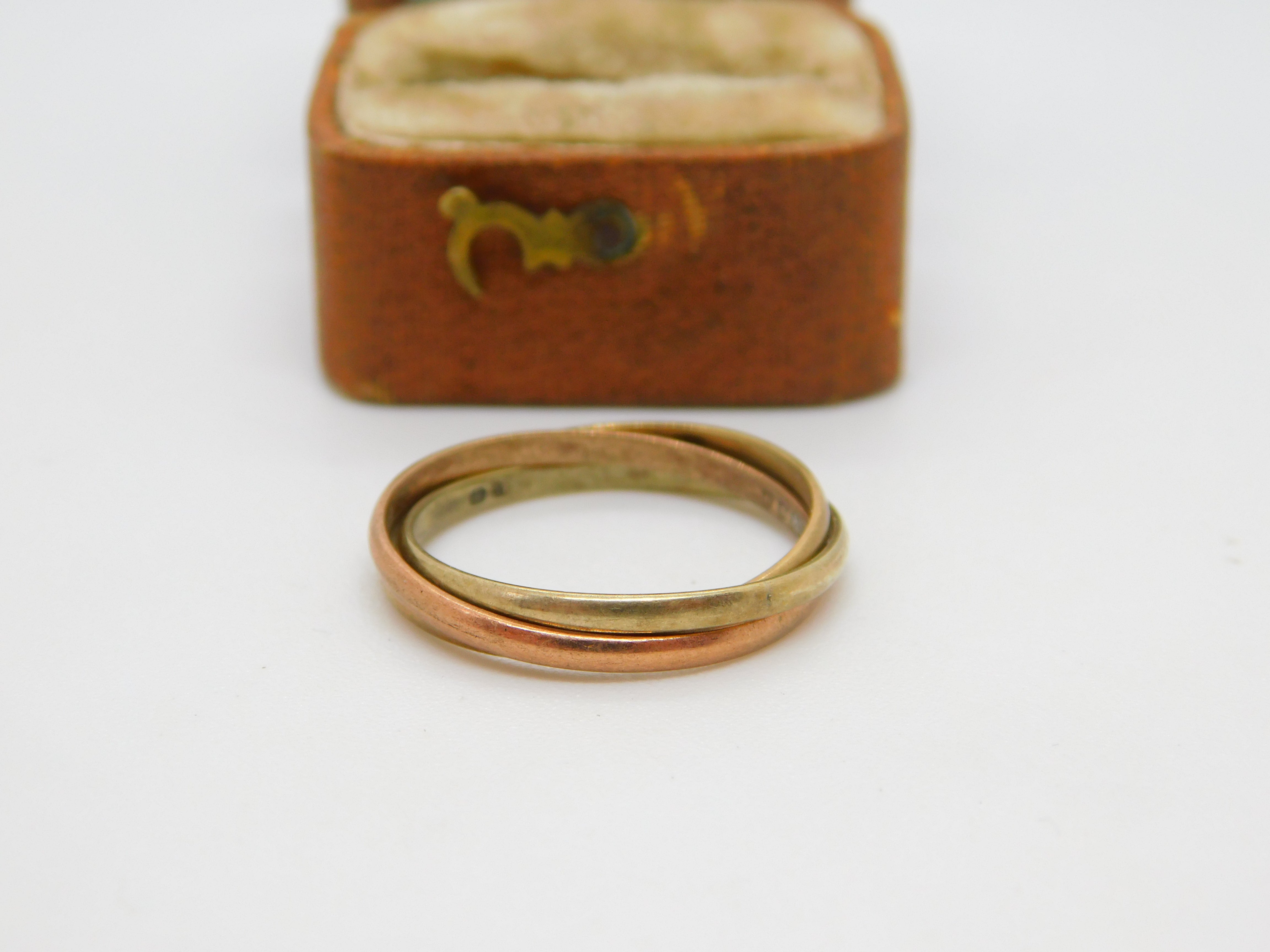 9ct Tri-Colour Gold Trinity Russian Wedding Ring Vintage 1990 London