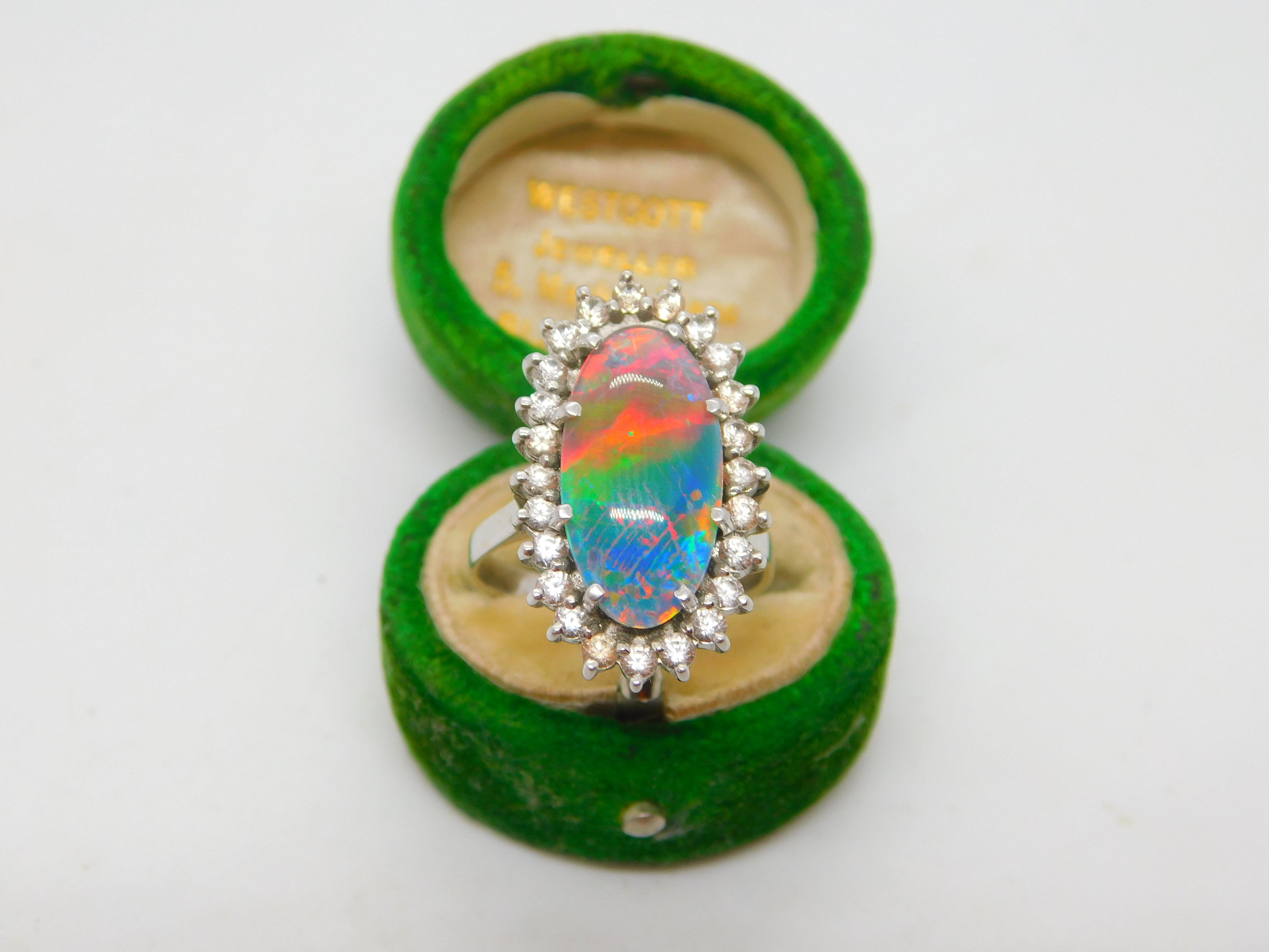 9ct White Gold Large Doublet Opal & Spinel Statement Ring Vintage c1980
