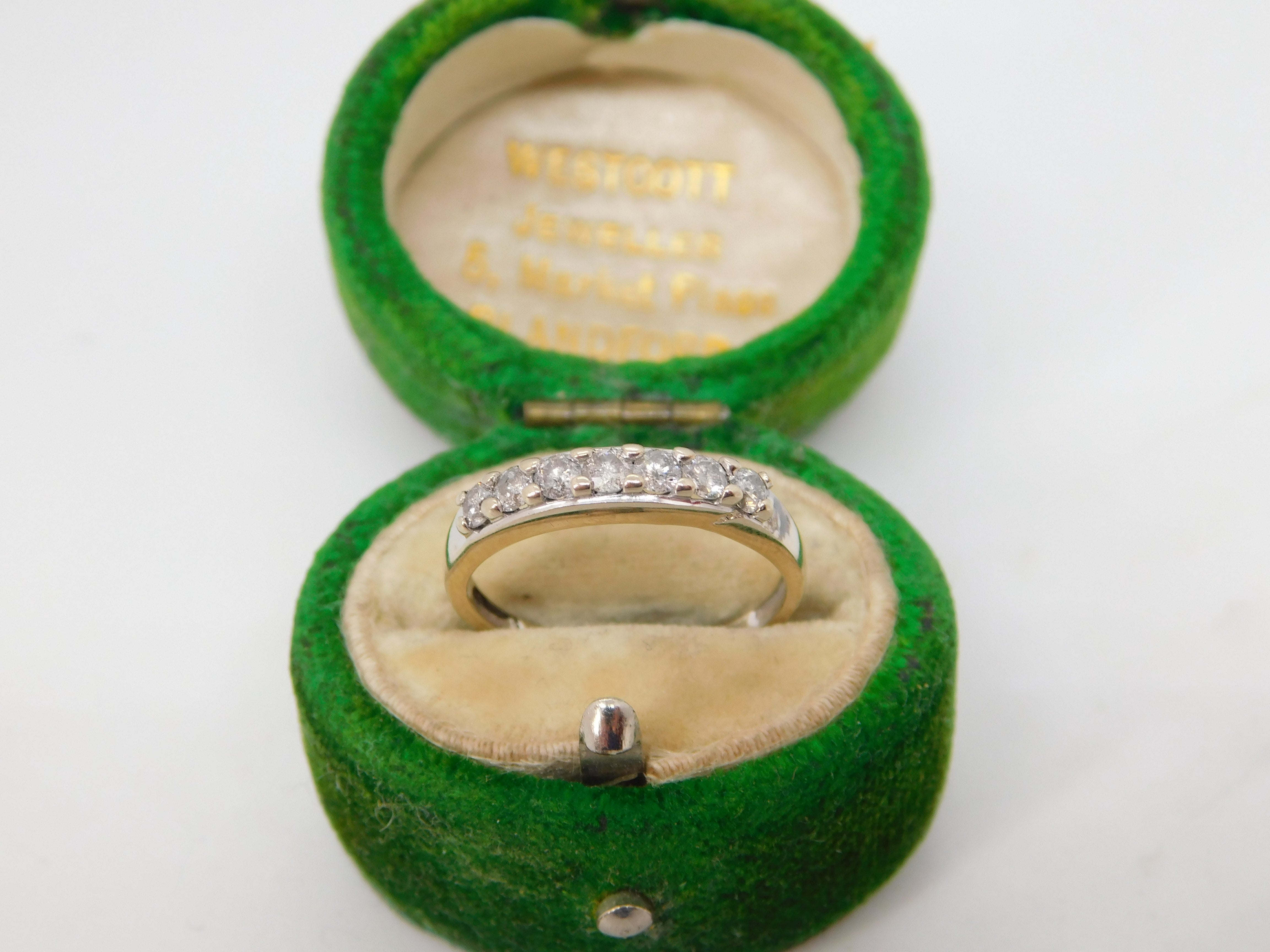 9ct White Gold Seven Stone Diamond Half-Eternity Ring Vintage c1970