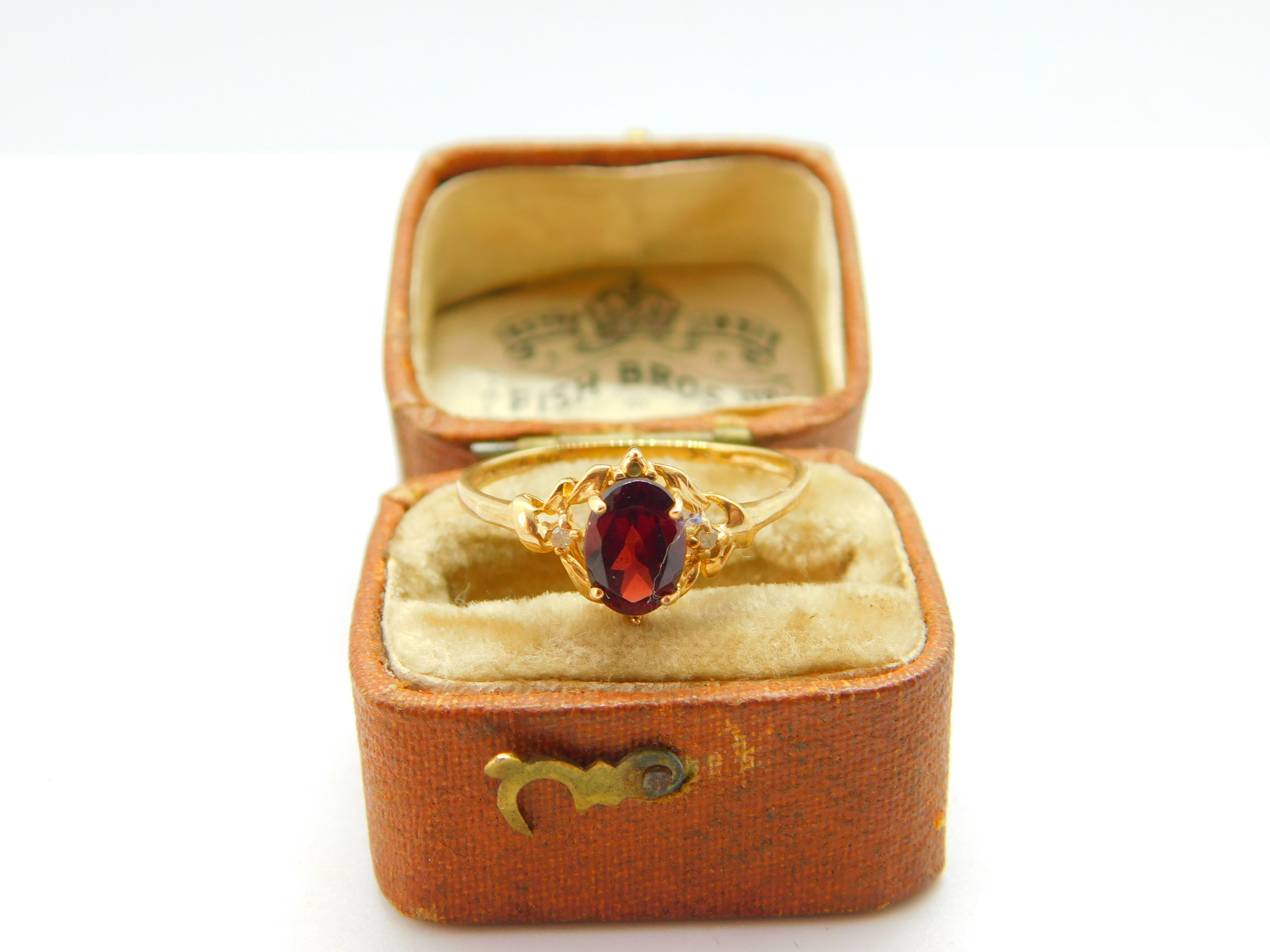 9ct Yellow Gold & Bohemian Garnet Set Dress Ring Vintage c1980