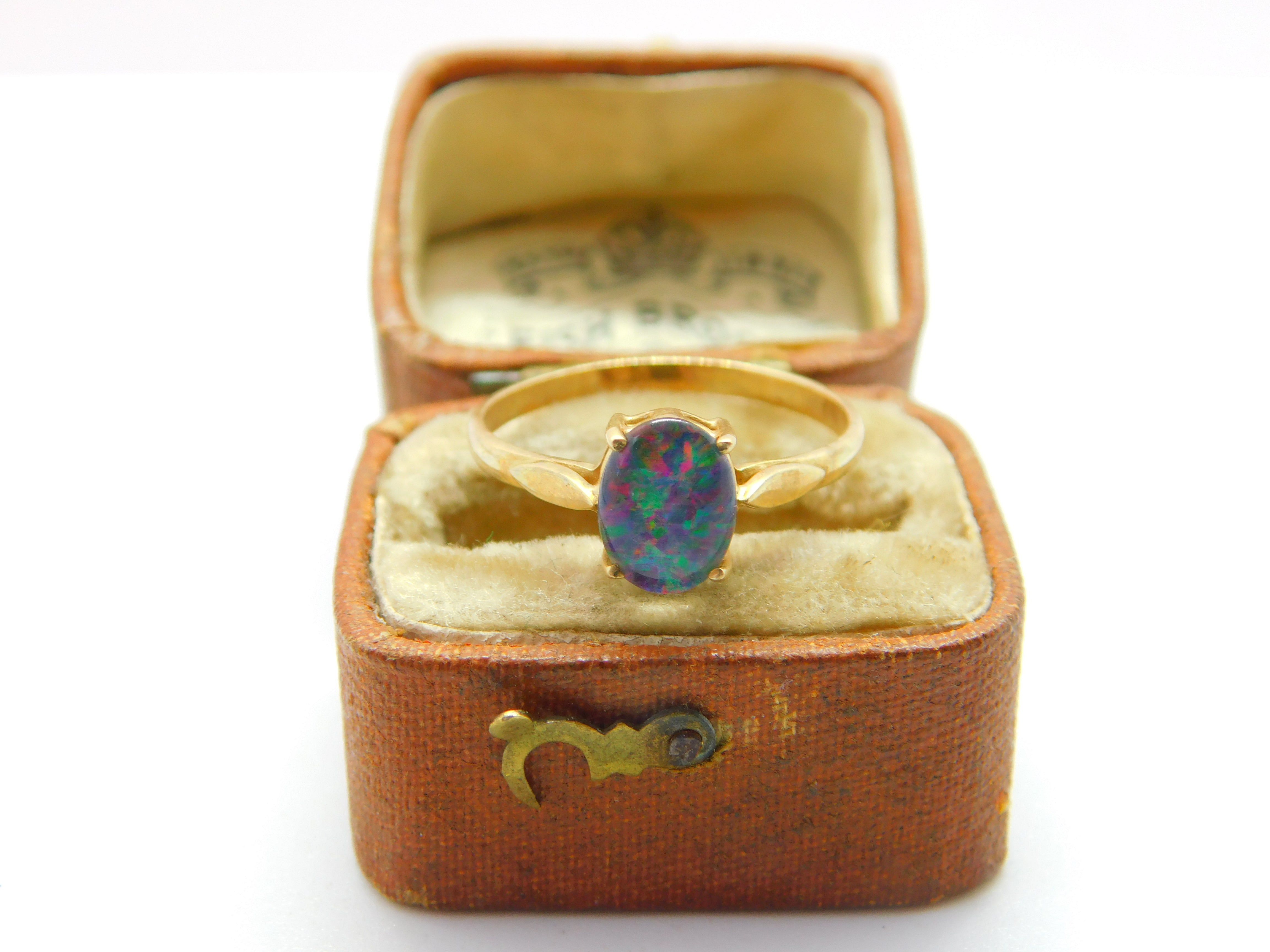 9ct Yellow Gold & Cabochon Ethiopian Opal Dress Ring 2006 Birmingham Vintage
