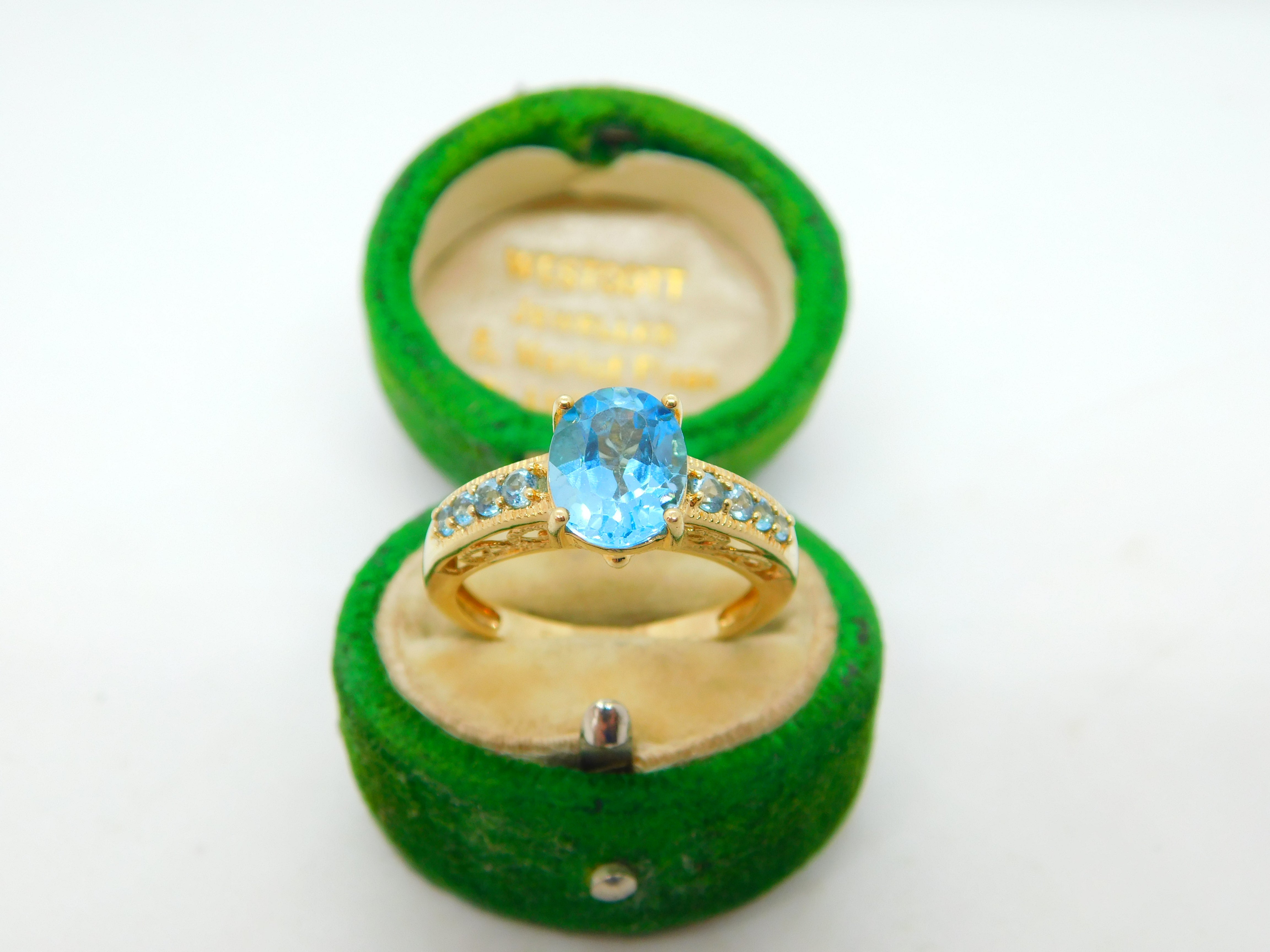 9ct Yellow Gold & Blue Topaz Dress Ring Vintage 2007 Birmingham