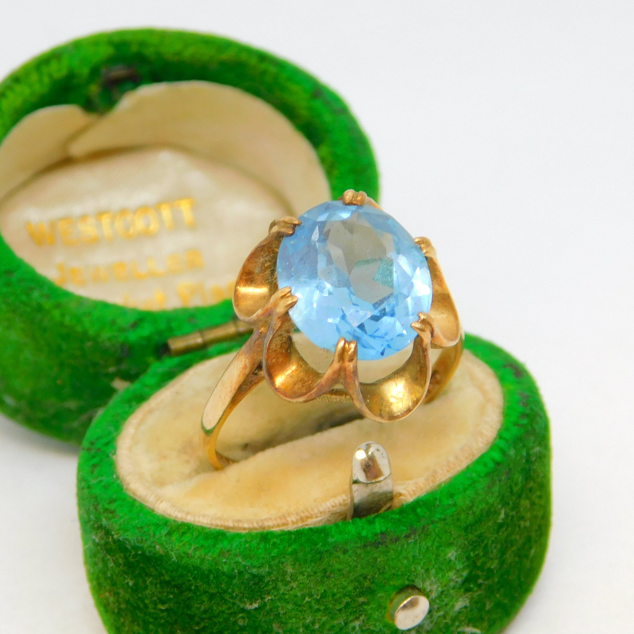 9ct Yellow Gold & Blue Topaz Set Solitaire Ring Vintage 1969 London