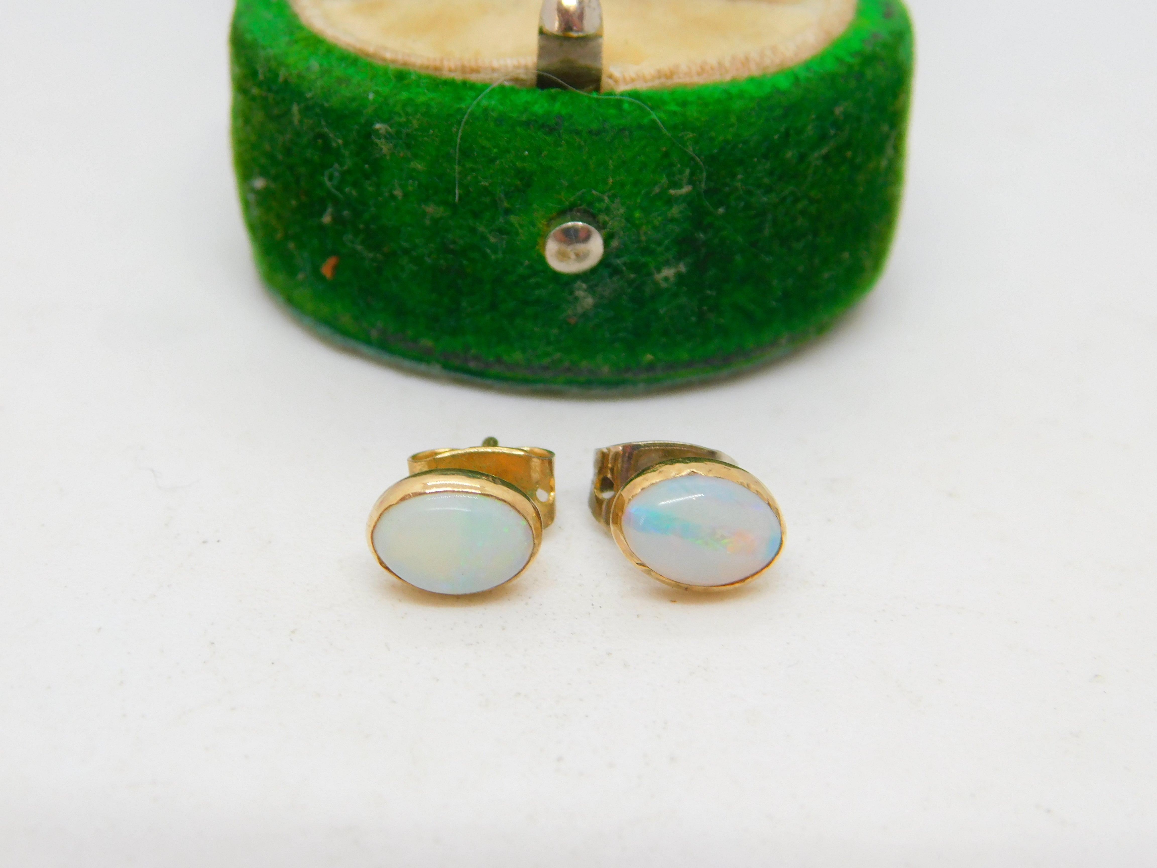 9ct Yellow Gold & Cabochon Opal Stud Earrings Vintage c1980 Birmingham