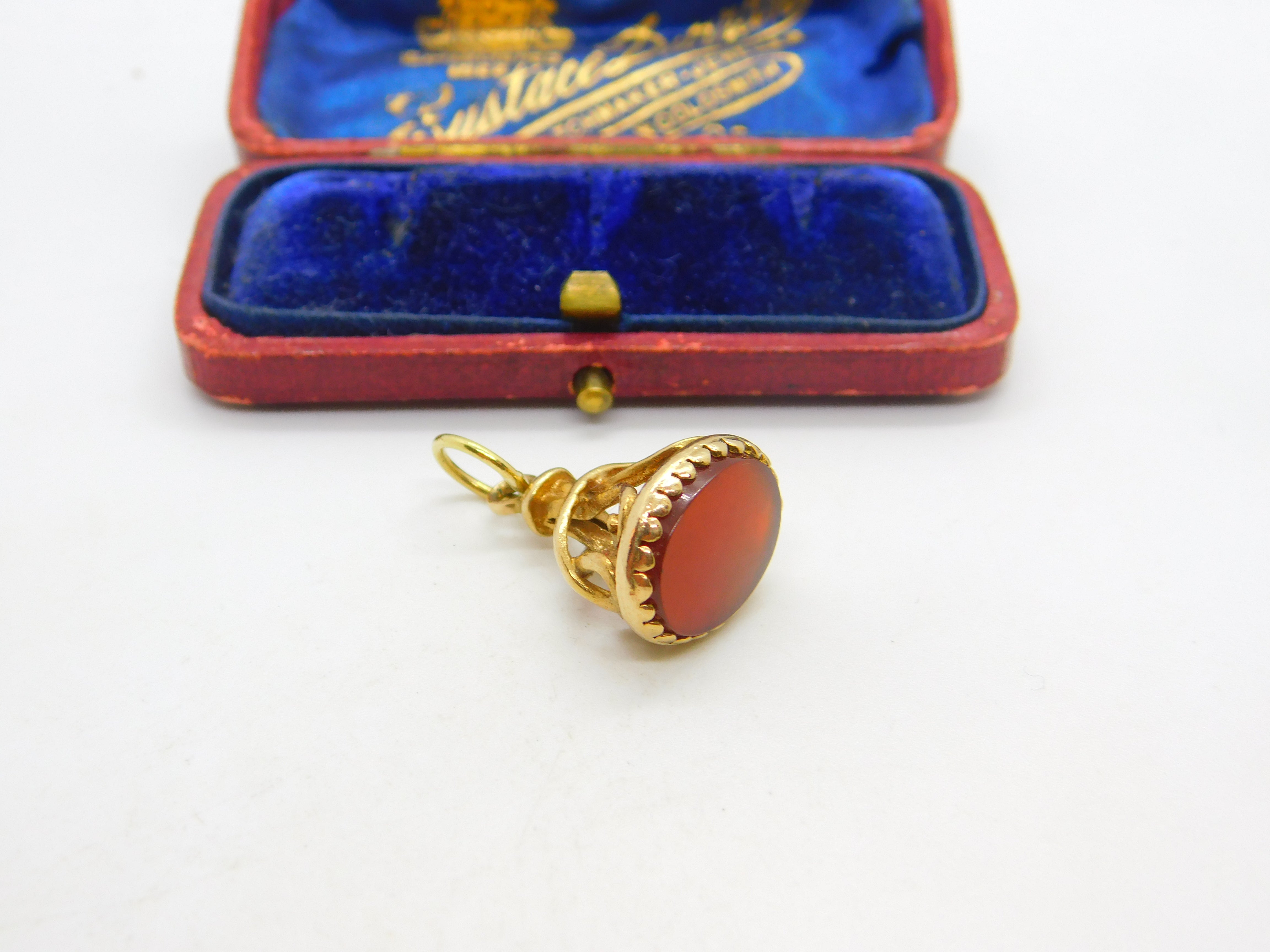 9ct Yellow Gold & Carnelian Set Floral Form Fob Seal Pendant Antique c1930 Deco