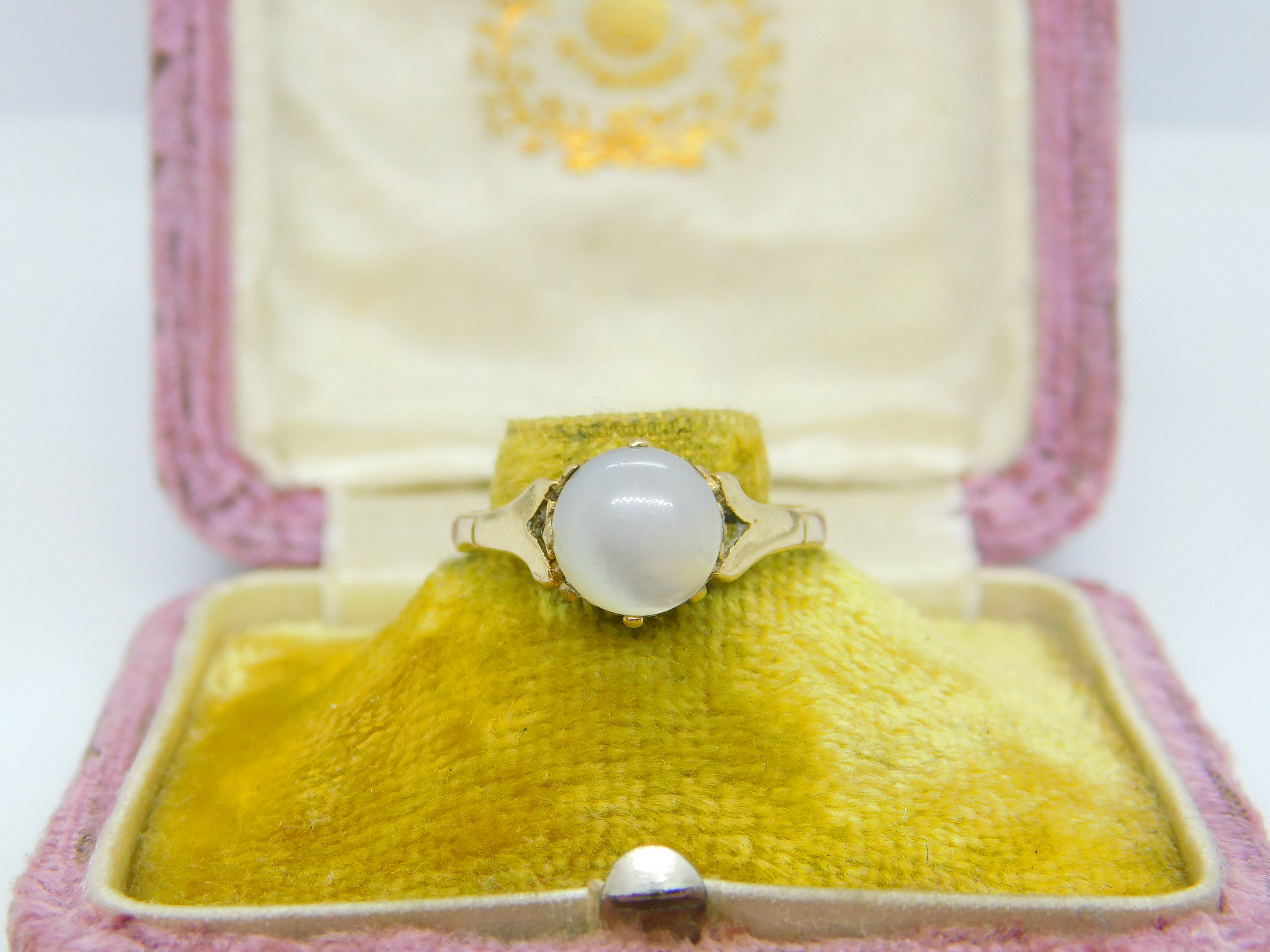 9ct Yellow Gold & Cabochon Moonstone Set Band Ring 1979 Birmingham Vintage