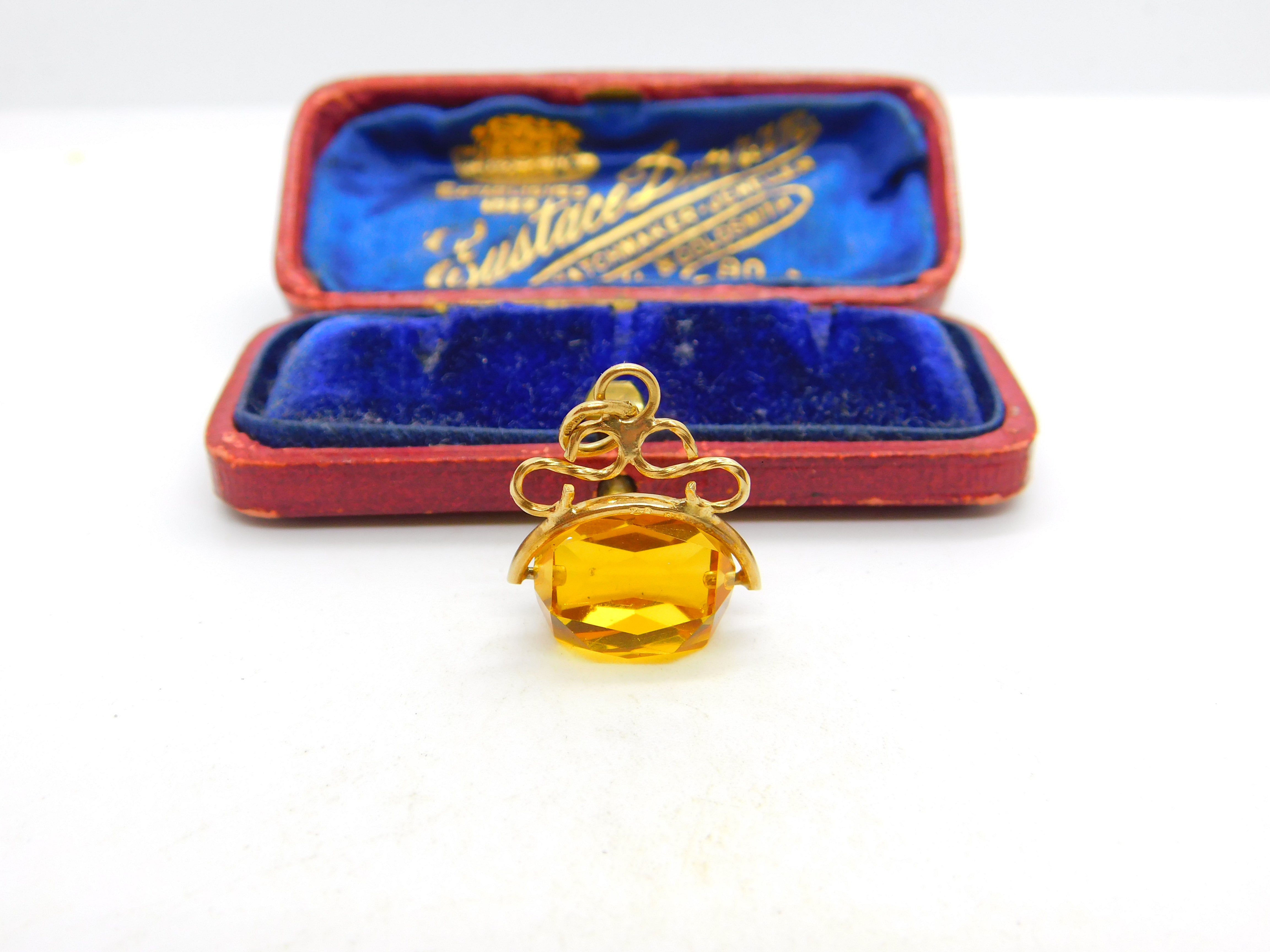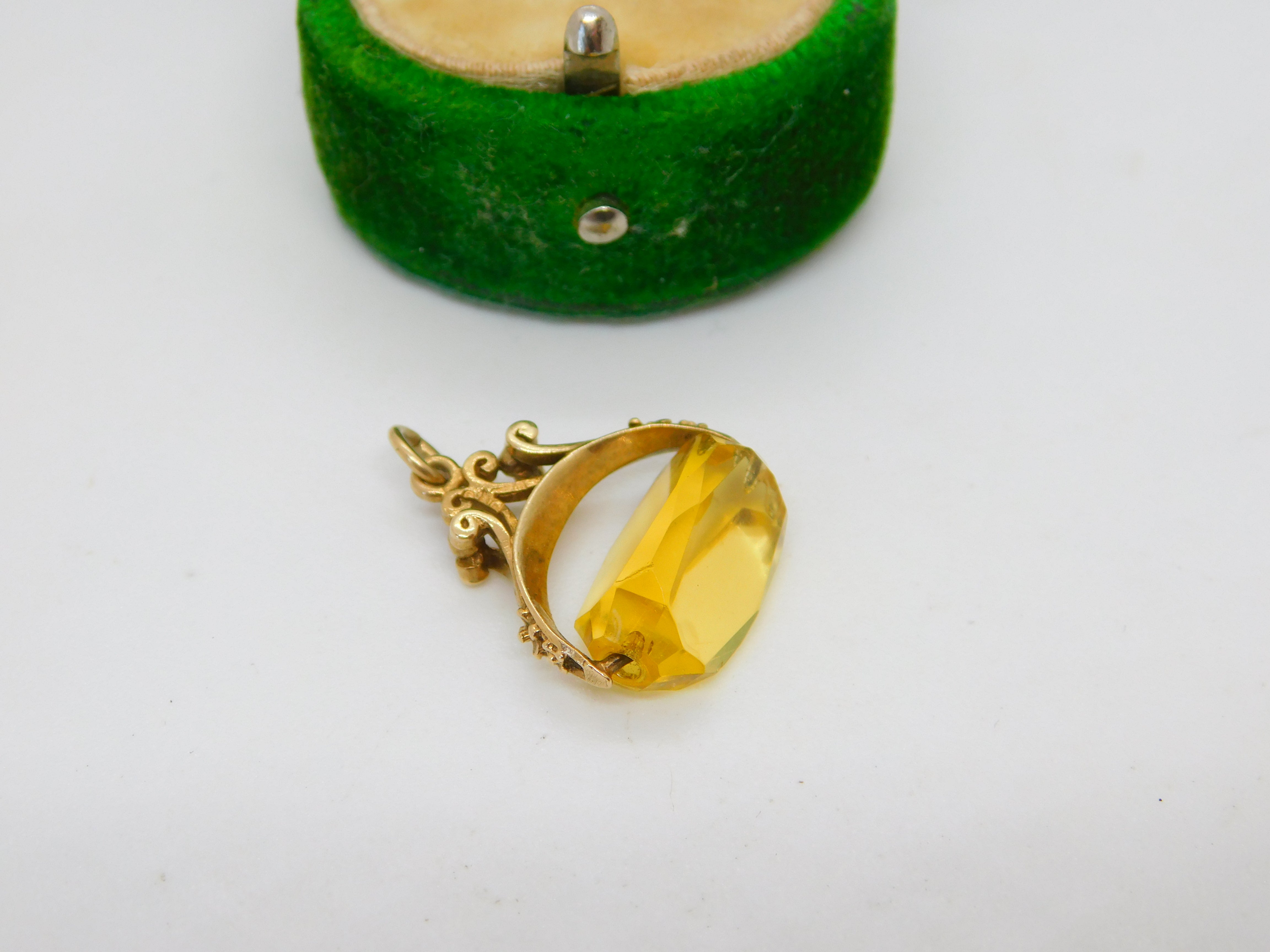 9ct Yellow Gold & Faceted Citrine Spinner Fob Pendant Vintage c1970