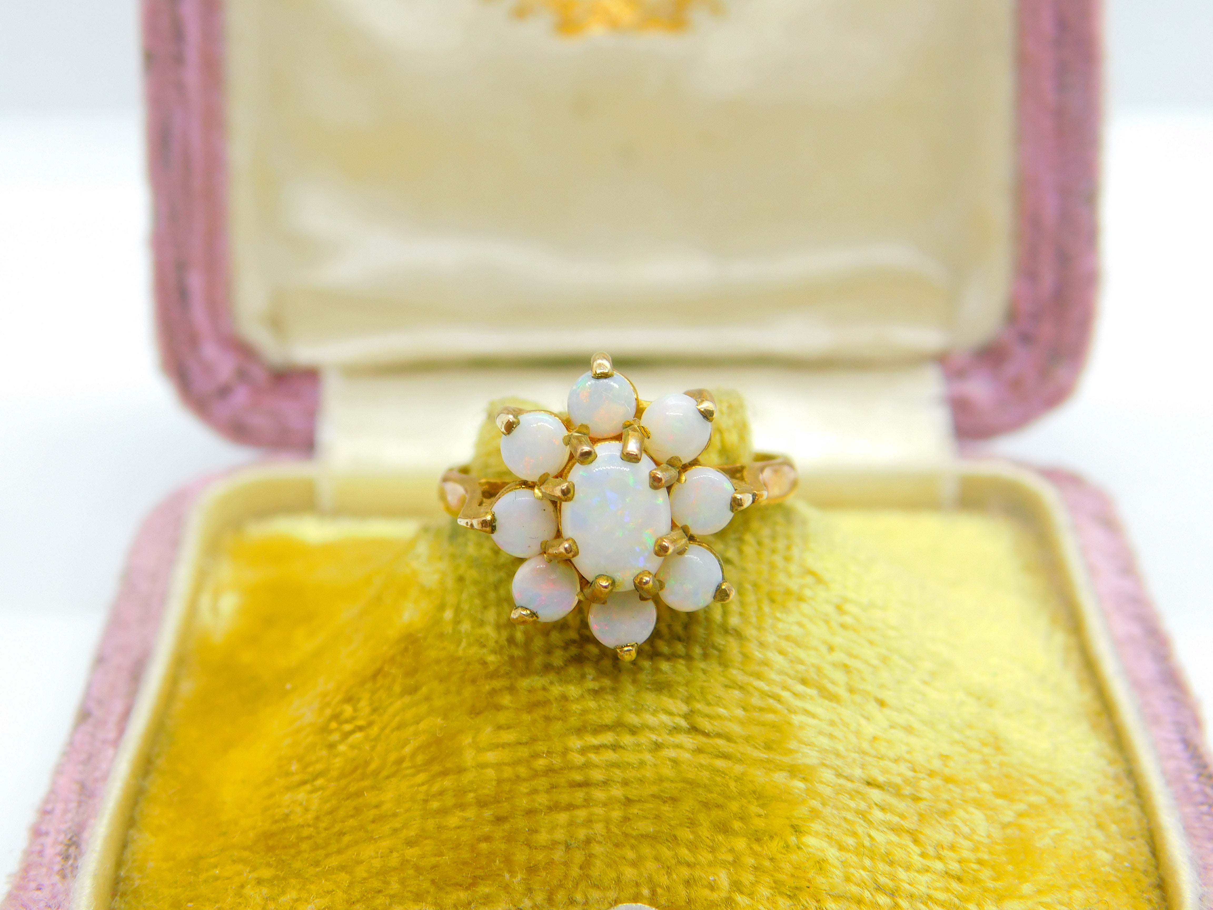 9ct Yellow Gold & Fire Opal Floral Cluster Ring 1973 London Vintage