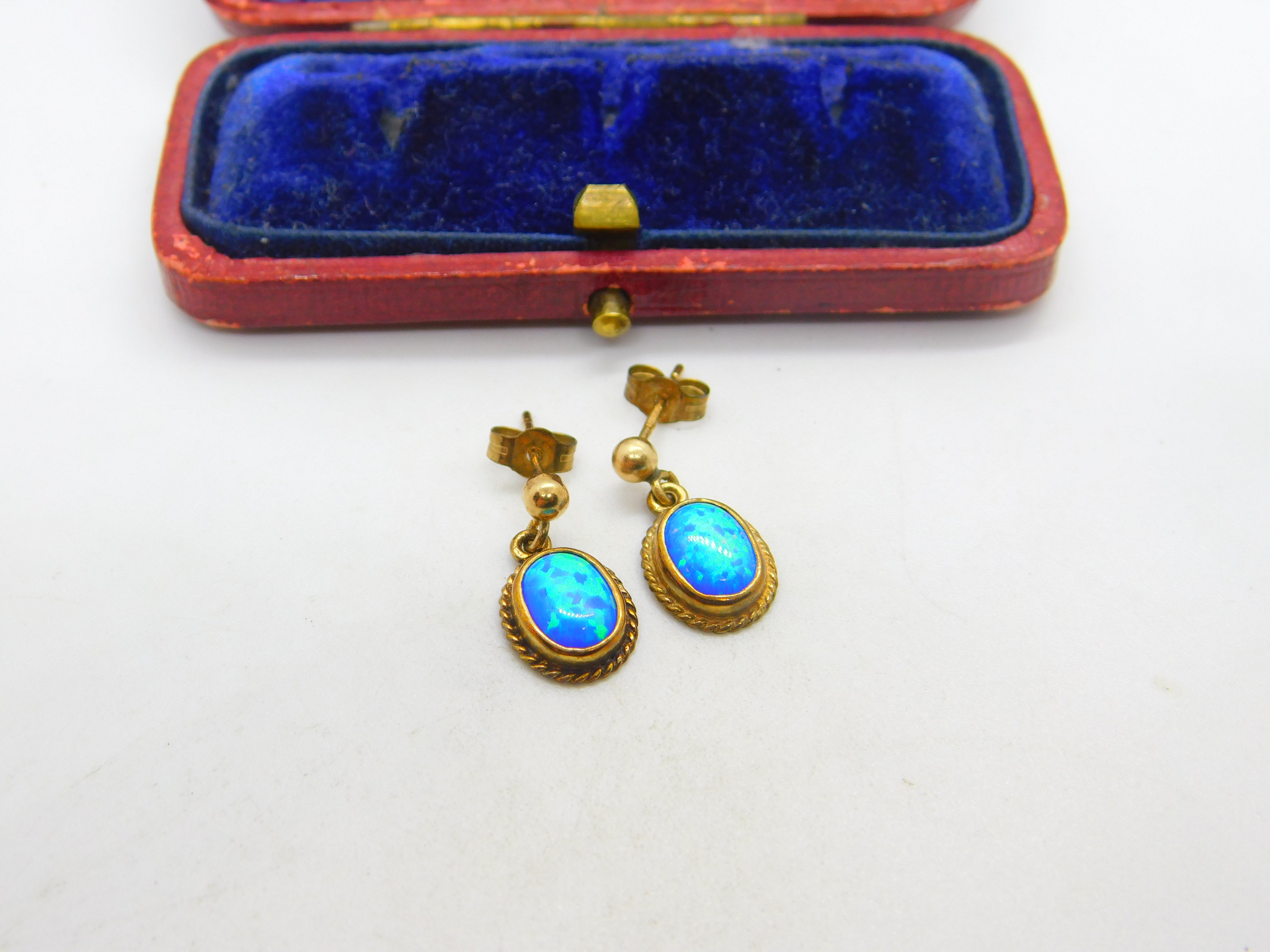9ct Yellow Gold & Greek Opal Drop Earrings Vintage c1980 Birmingham