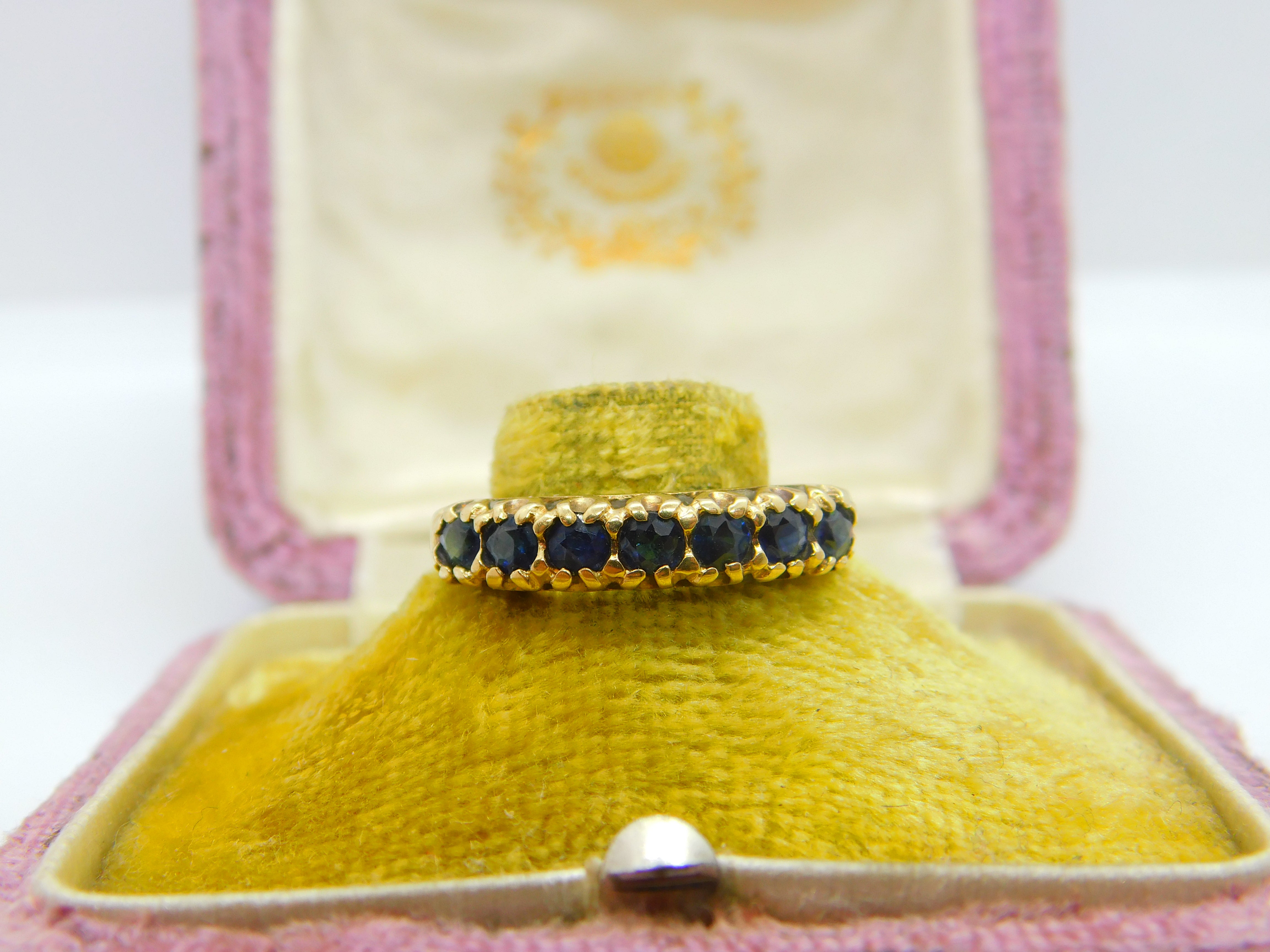 9ct Yellow Gold & Natural Sapphire Half-Eternity Ring Vintage 1978 London