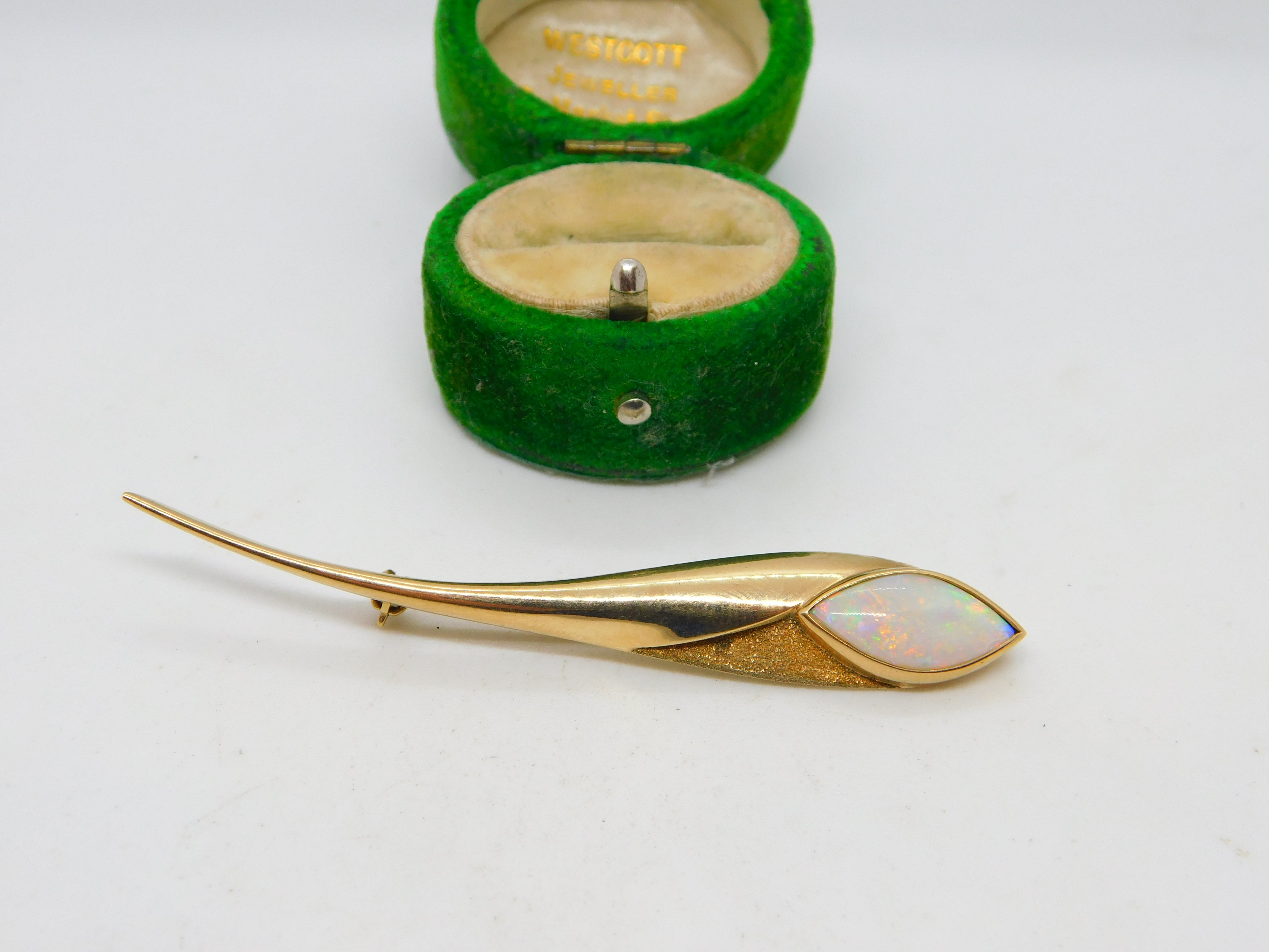 9ct Yellow Gold Cabochon White Opal Feather Brooch Vintage c1990 London