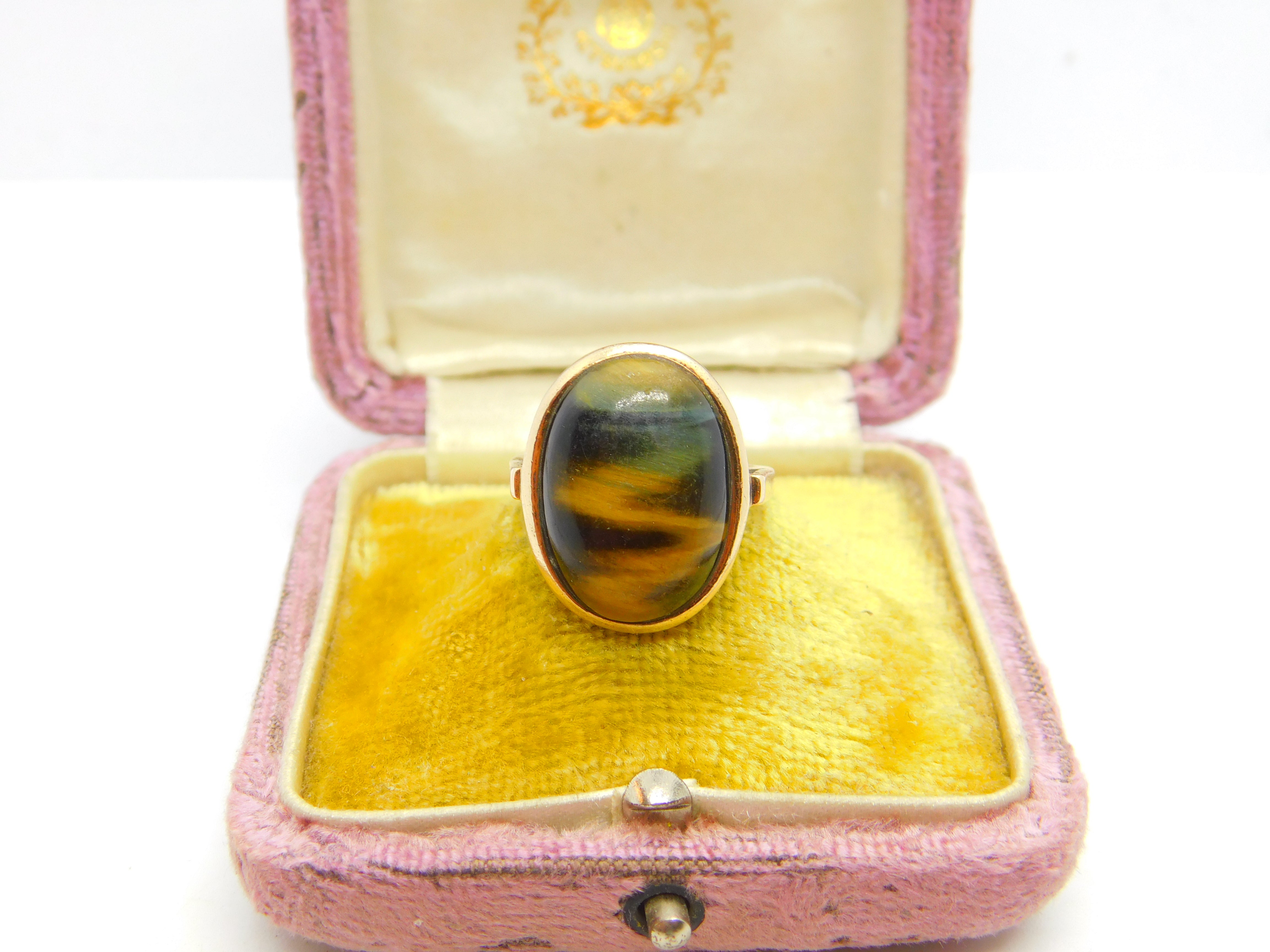 9ct Yellow Gold Cabochon Tiger's Eye Signet Ring 1976 London Vintage