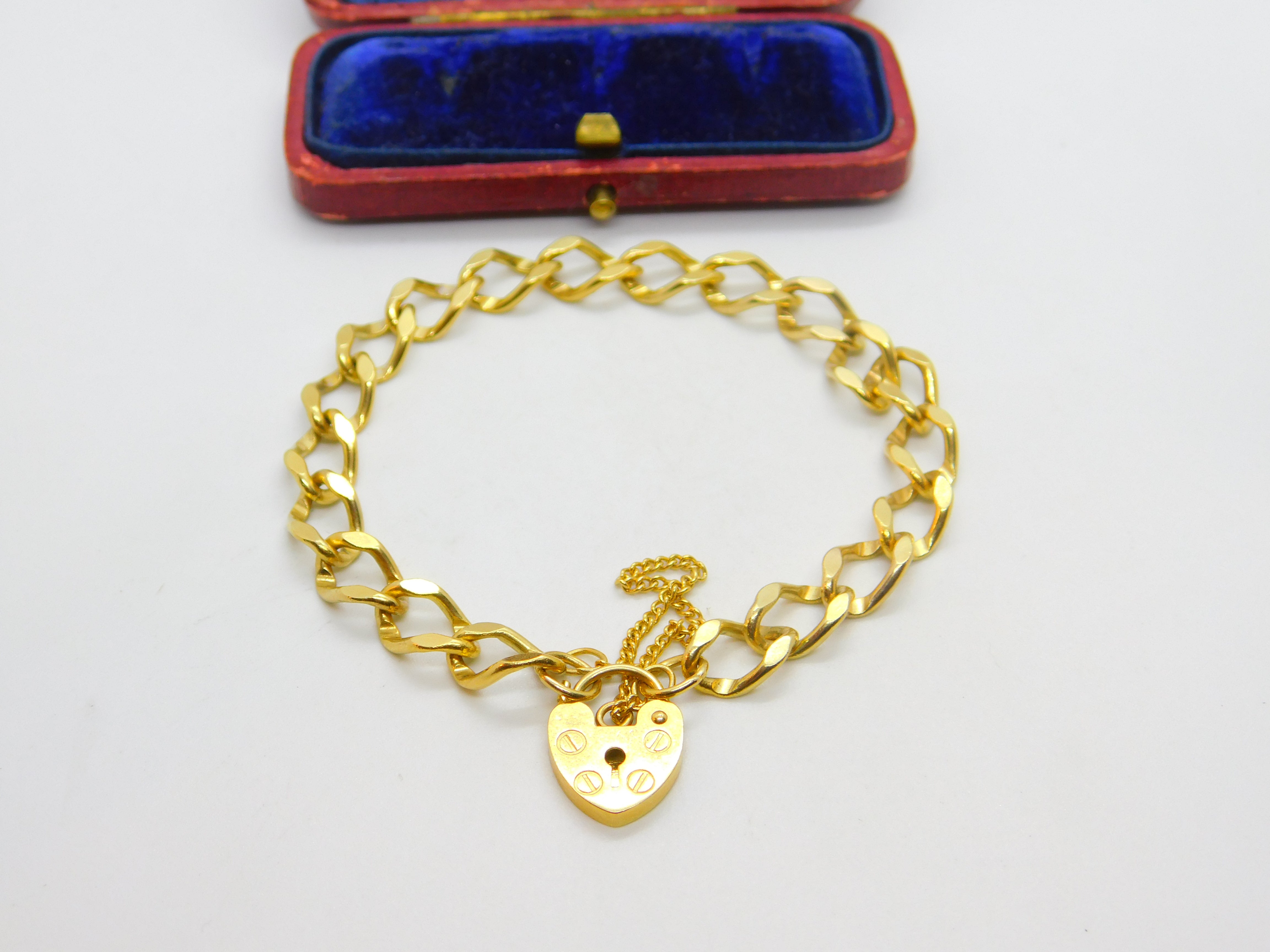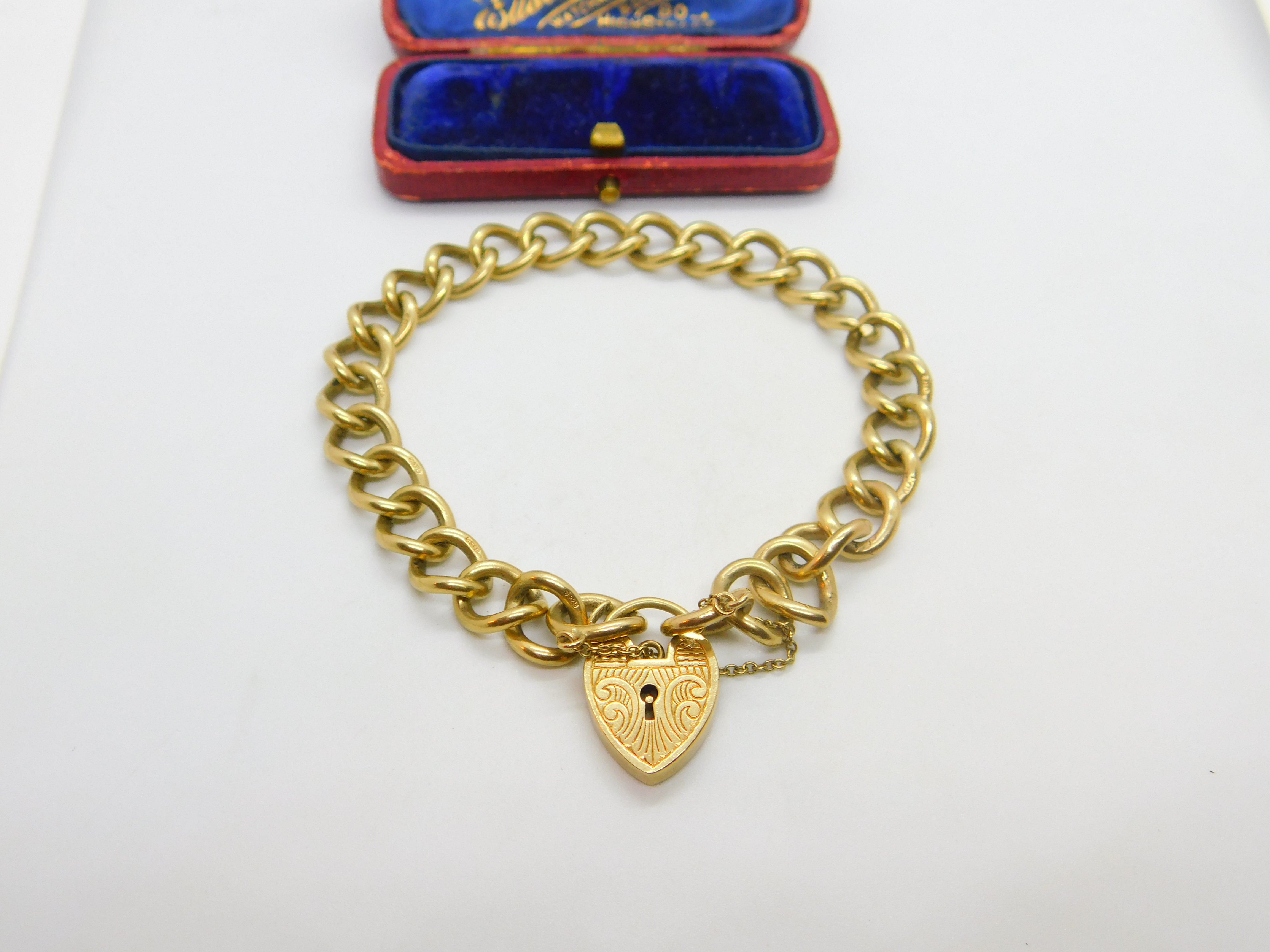 9ct Yellow Gold Curb Link Charm Bracelet Heart Lock Clasp 1977 Birmingham