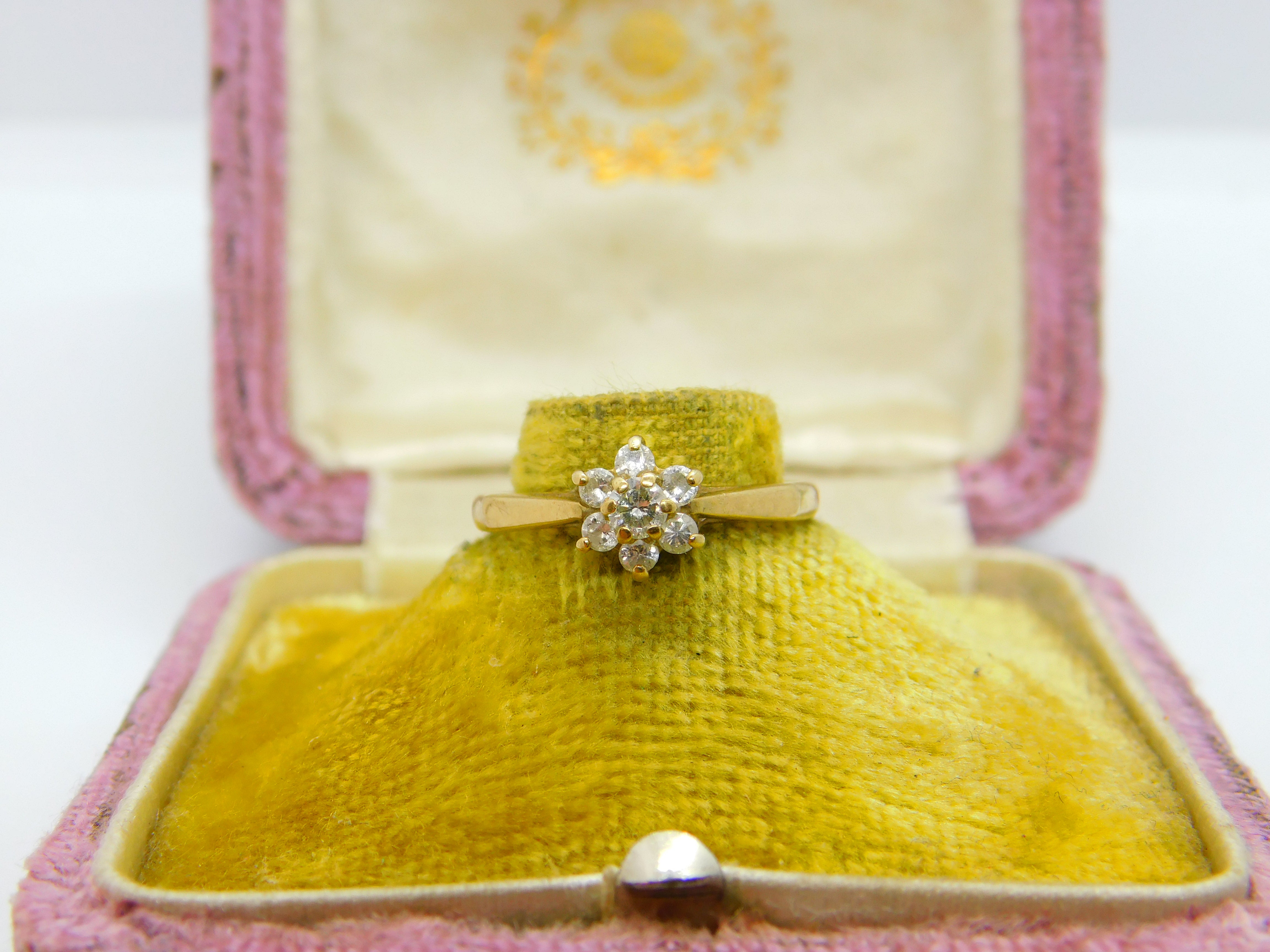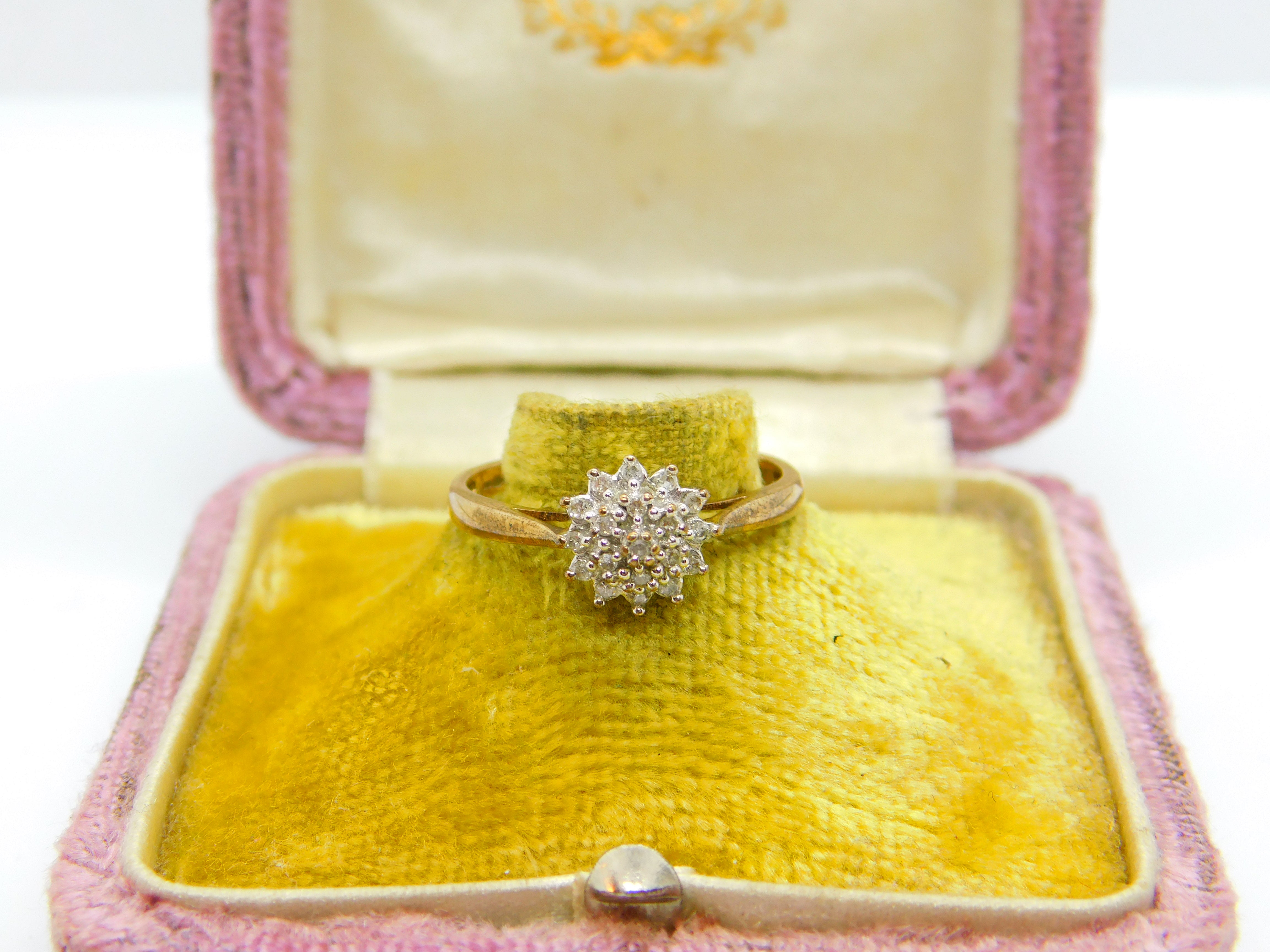 9ct Yellow Gold Diamond Daisy Floral Cluster Ring Vintage c1990 Sheffield