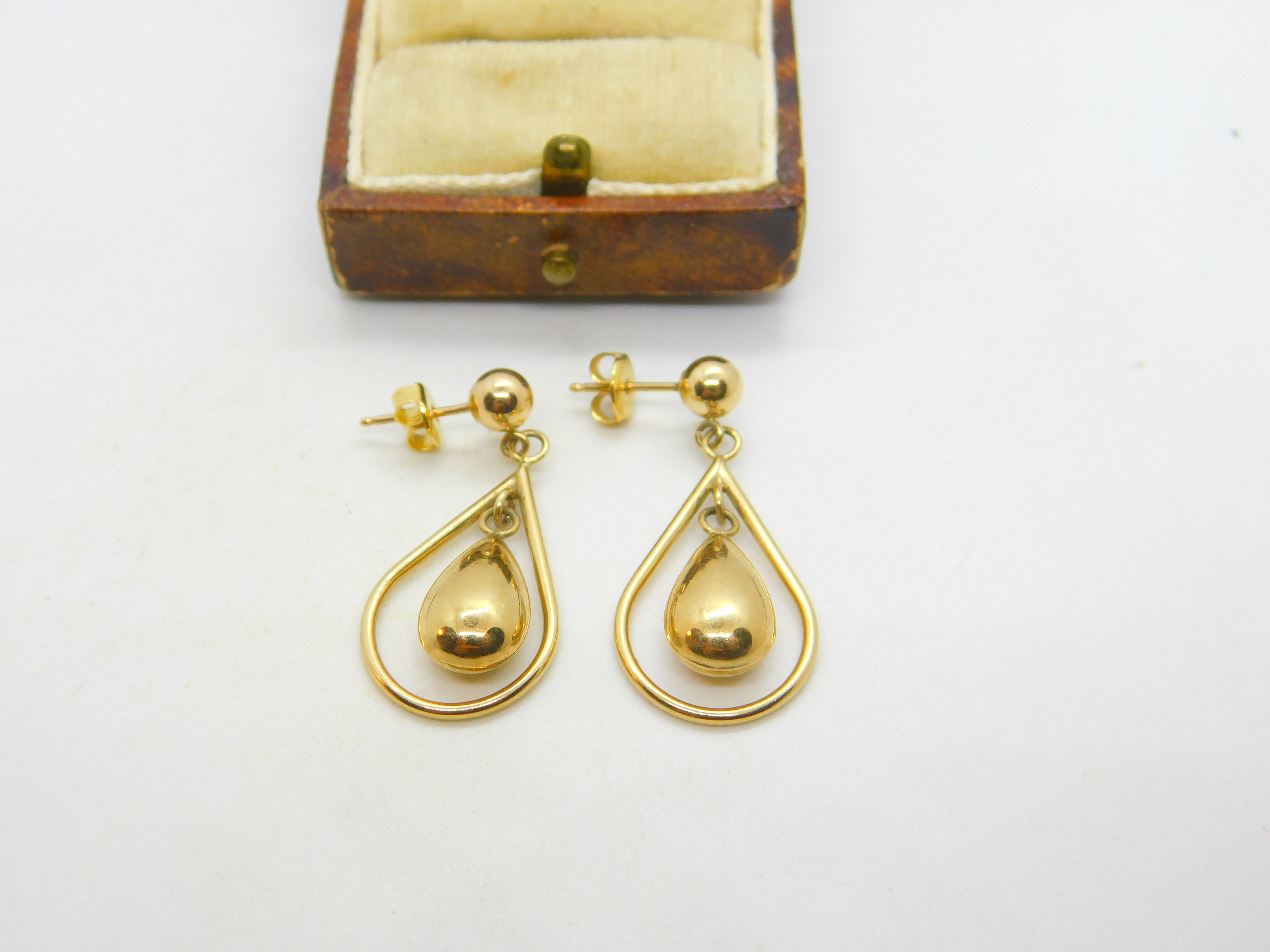 9ct Yellow Gold Dangling Pendant Drop Earrings Vintage c1980