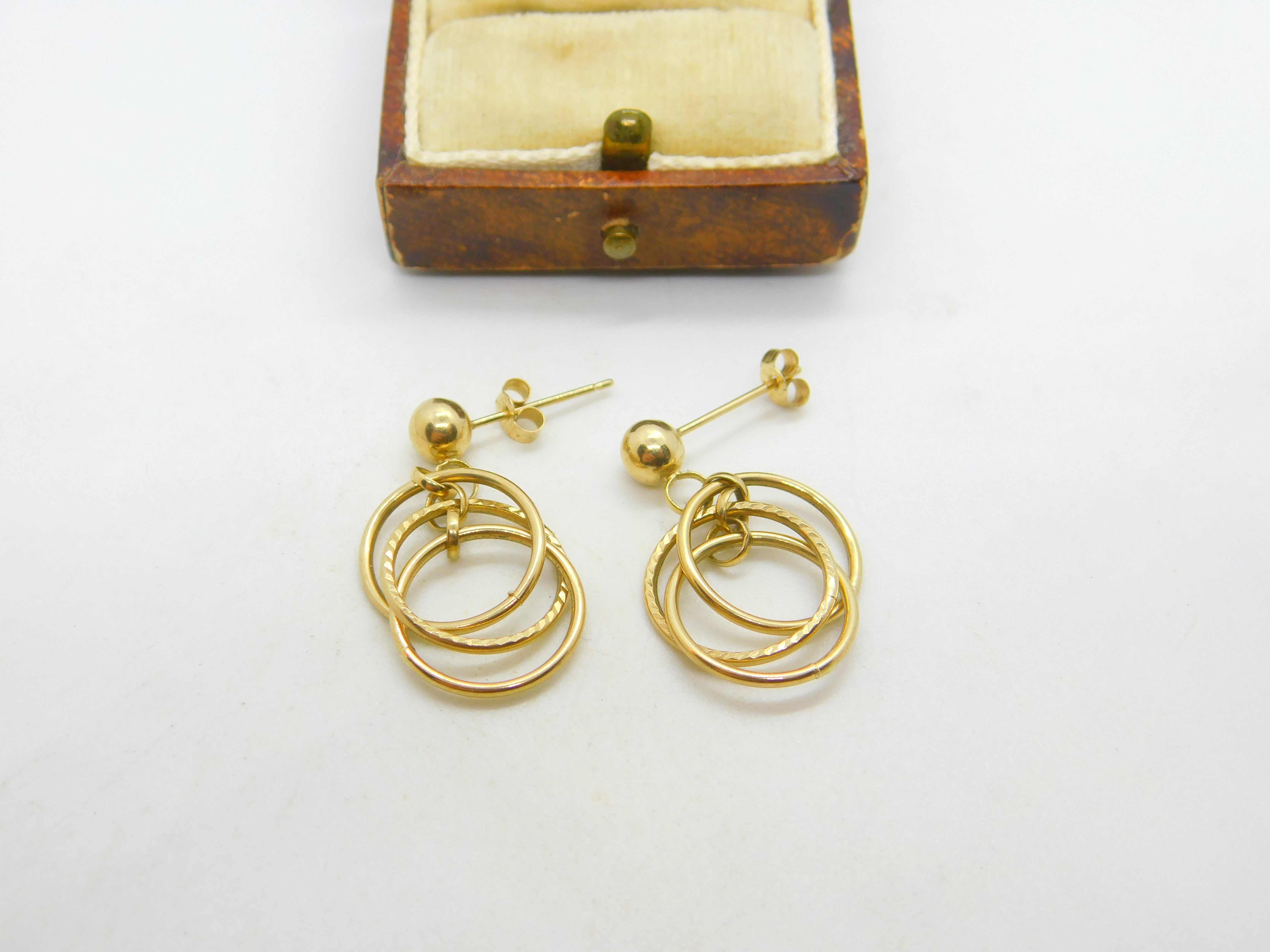 9ct Yellow Gold Dangling Circular Stud Earrings Vintage c1970