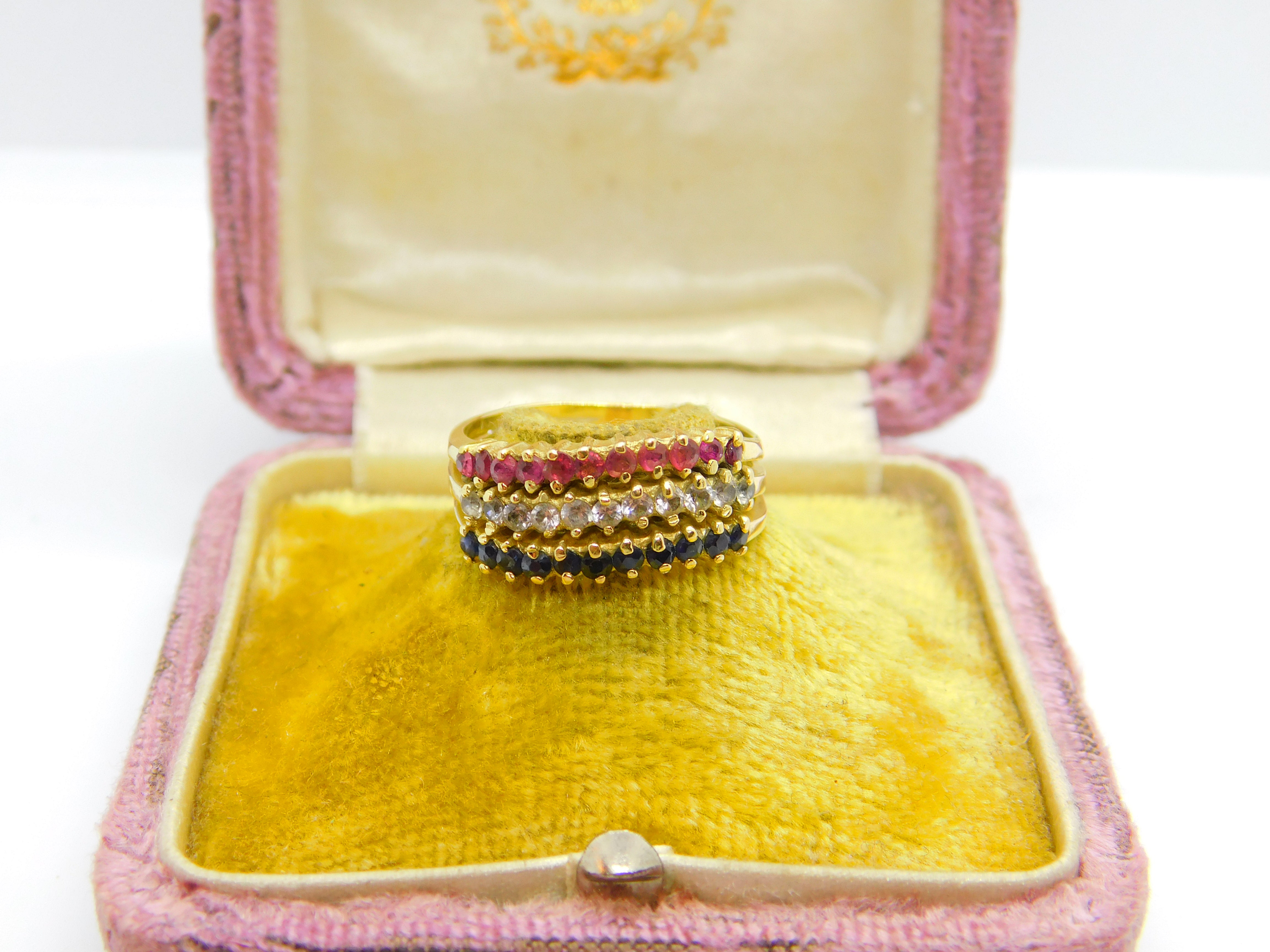 14ct Yellow Gold, Sapphire, Ruby & Diamond Paste Vintage c1970 Size P UK