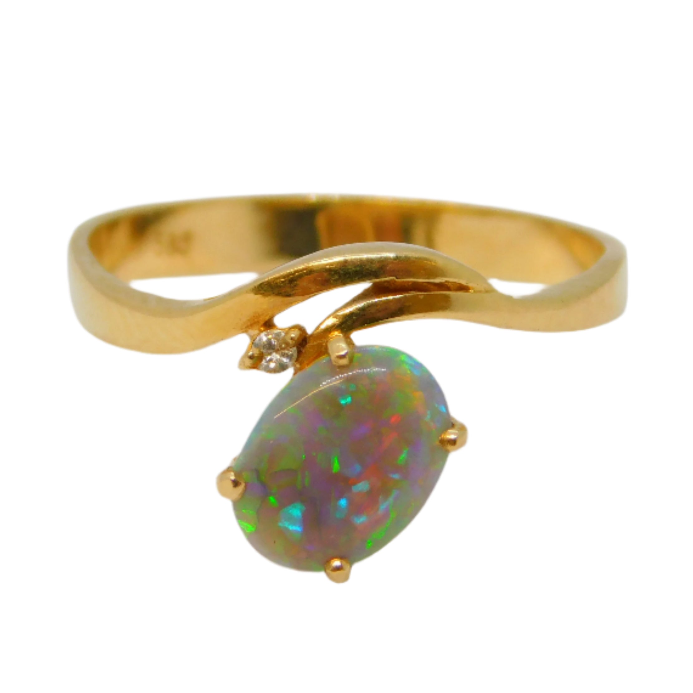 14ct Yellow Gold, White Opal & Diamond Crossover Ring Vintage c1970