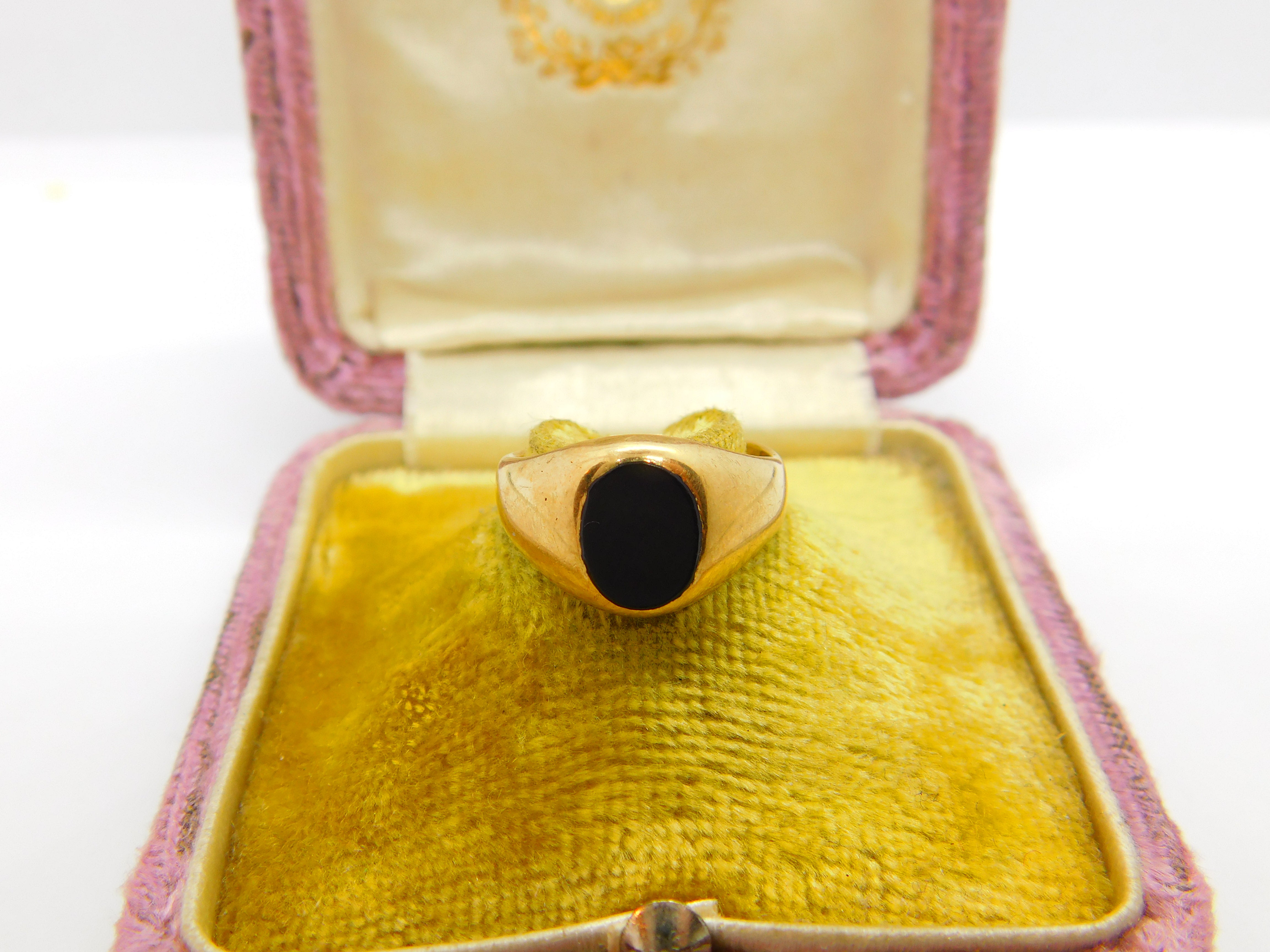 9ct Yellow Gold Onyx Set Signet Ring Mid-Century c1950 Birmingham Size I 1/2 UK