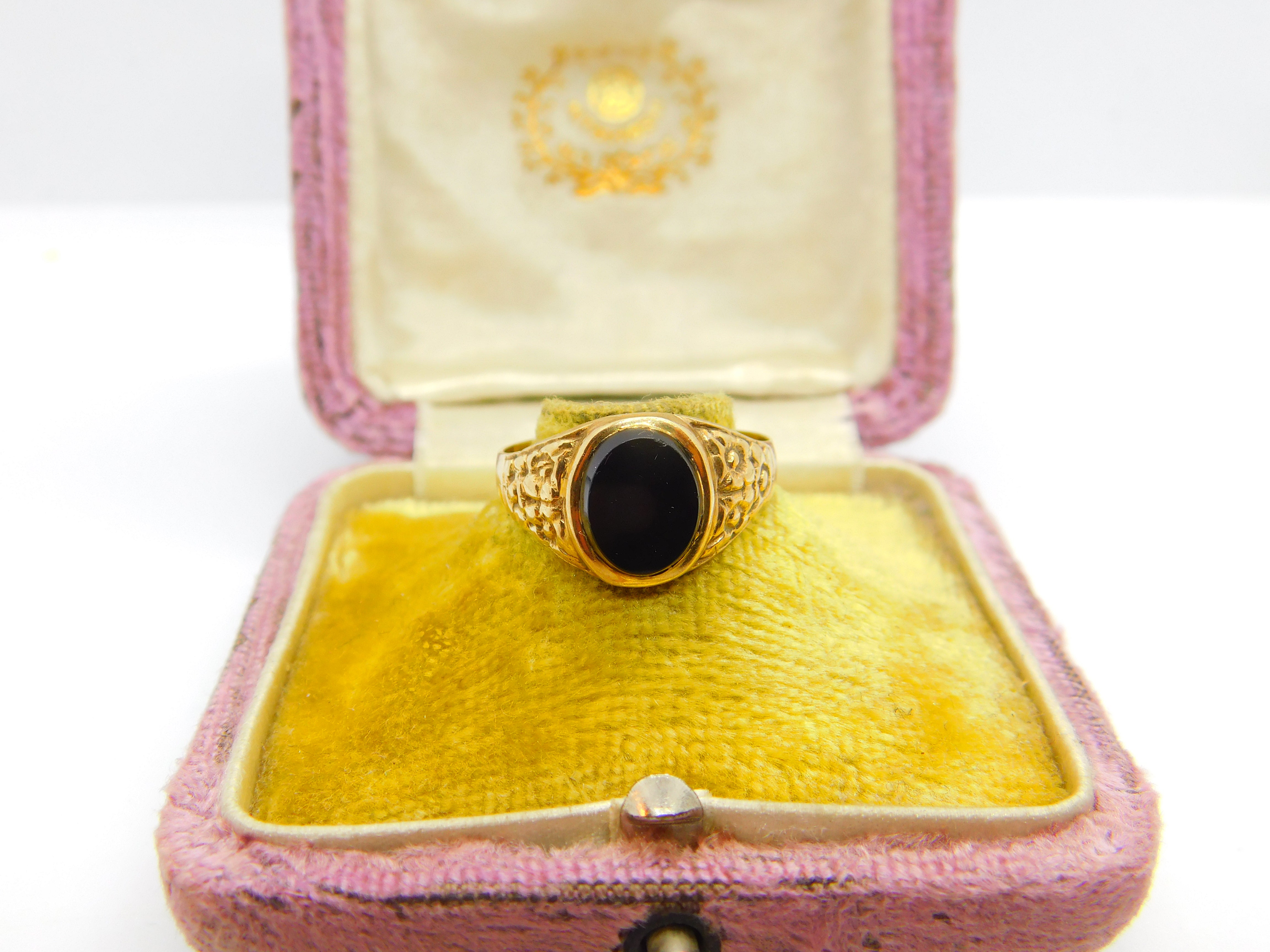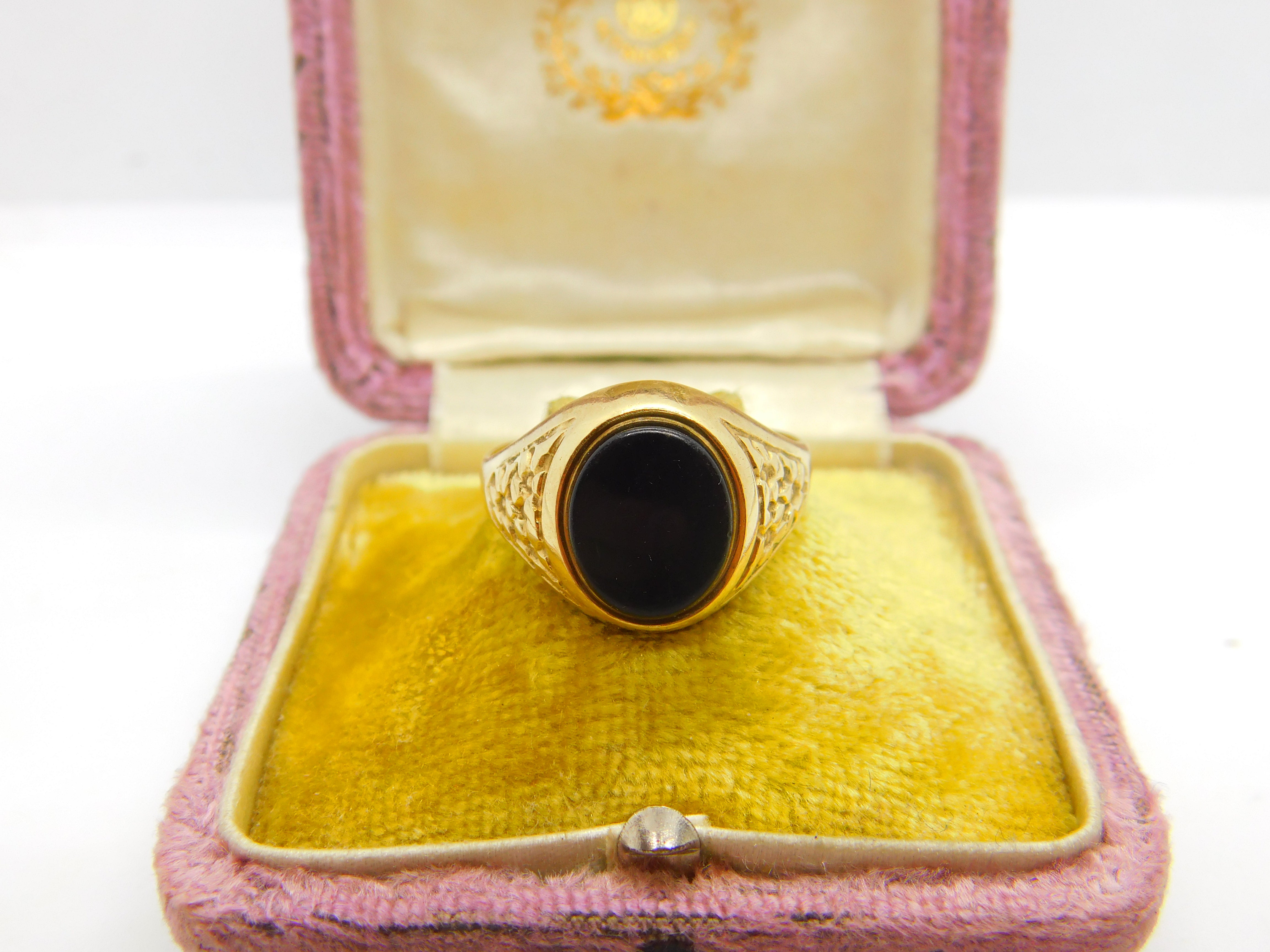 9ct Yellow Gold Onyx Set Signet Ring Vintage 1971 Birmingham