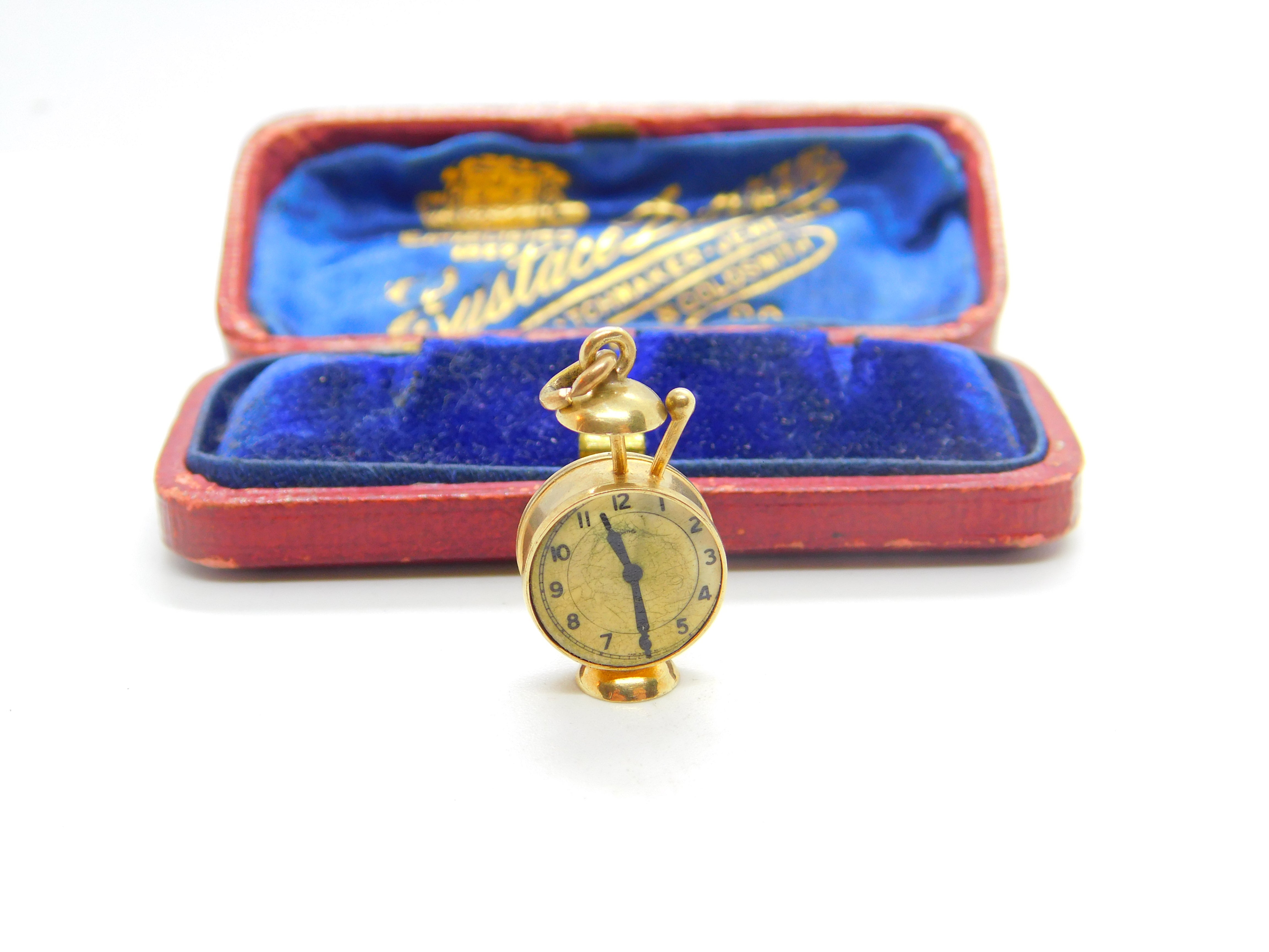 9ct Yellow Gold Novelty Alarm Clock Charm or Pendant 1973 London Vintage