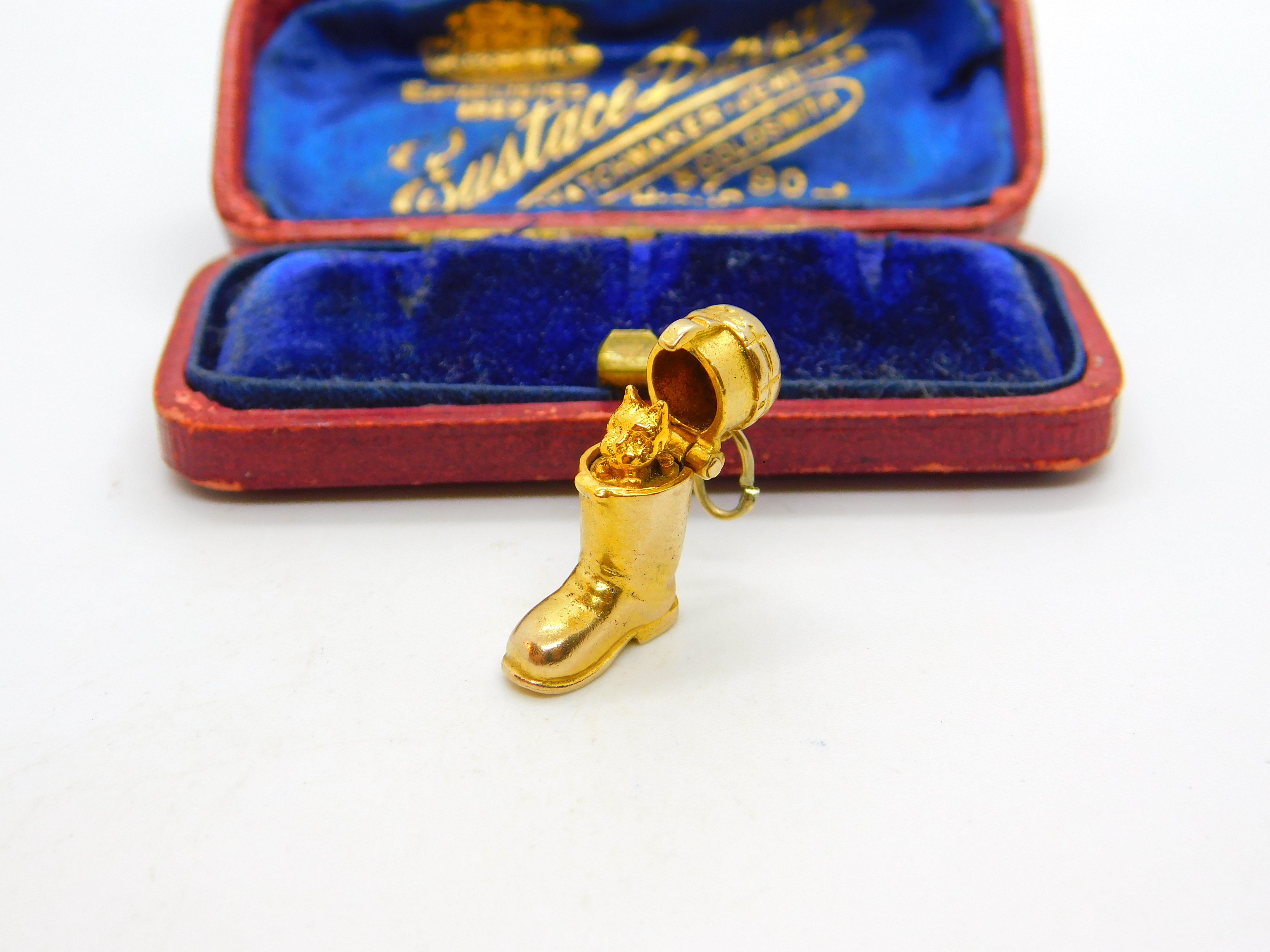 9ct Yellow Gold Opening 'Puss in Boots' Charm Pendant 1959 London Vintage