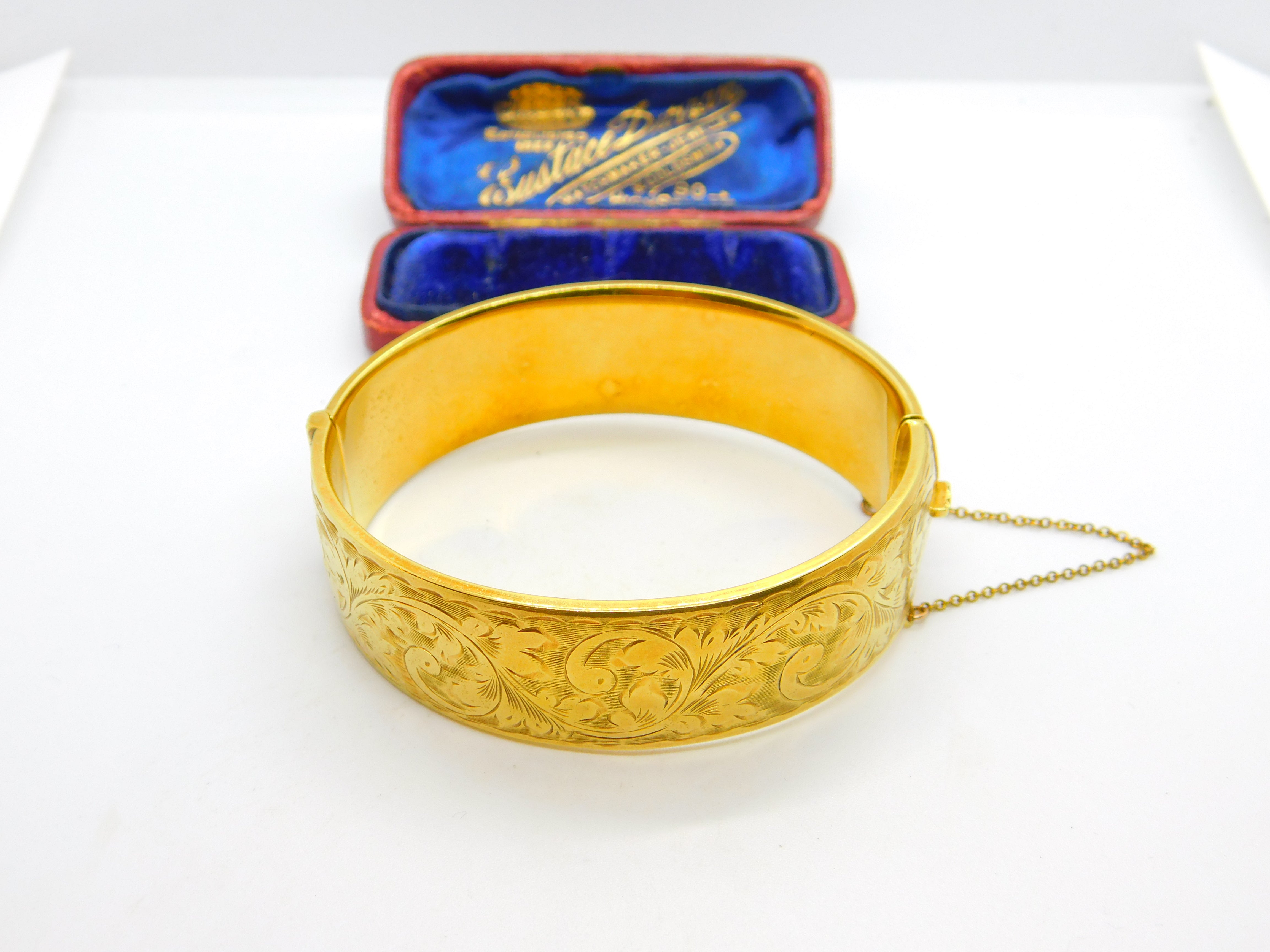 9ct Yellow Gold on Metal Core Floral Cuff Bangle Bracelet Antique c1930 Art Deco
