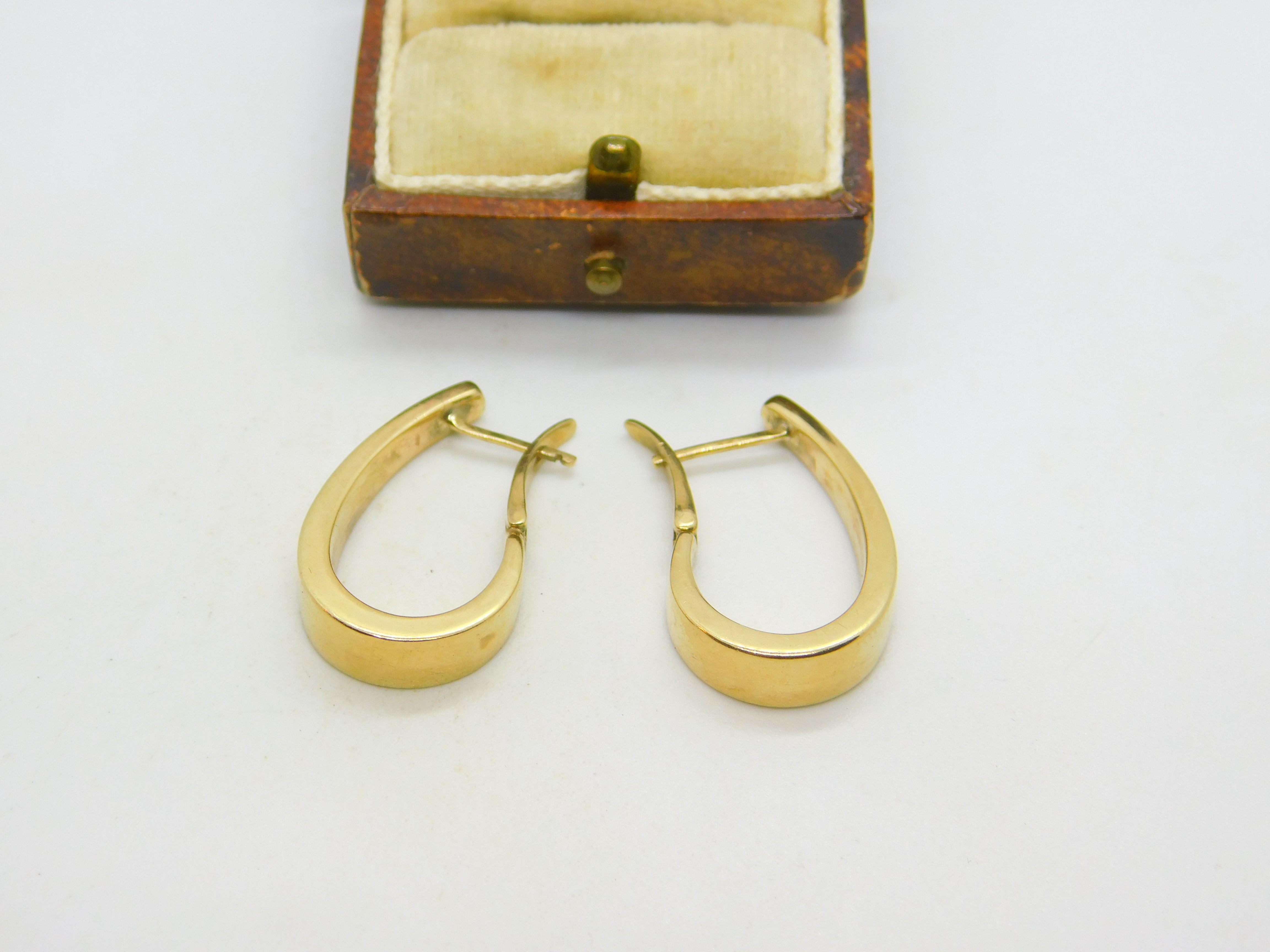 9ct Yellow Gold Oval Form Sleeper Hoop Earrings Vintage c1980