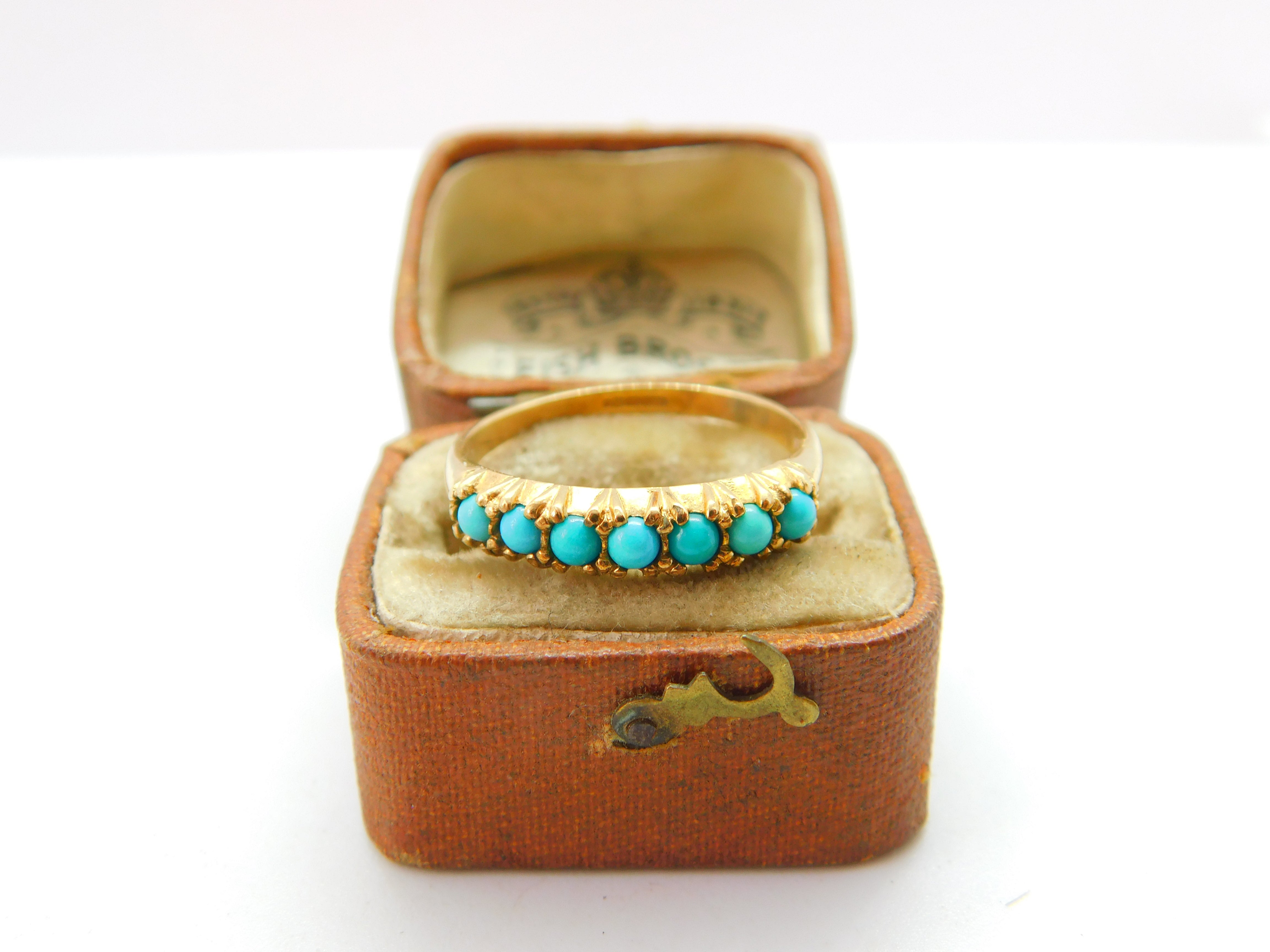 9ct Yellow Gold Seven Stone Turquoise Half Eternity Ring Vintage c1990 London