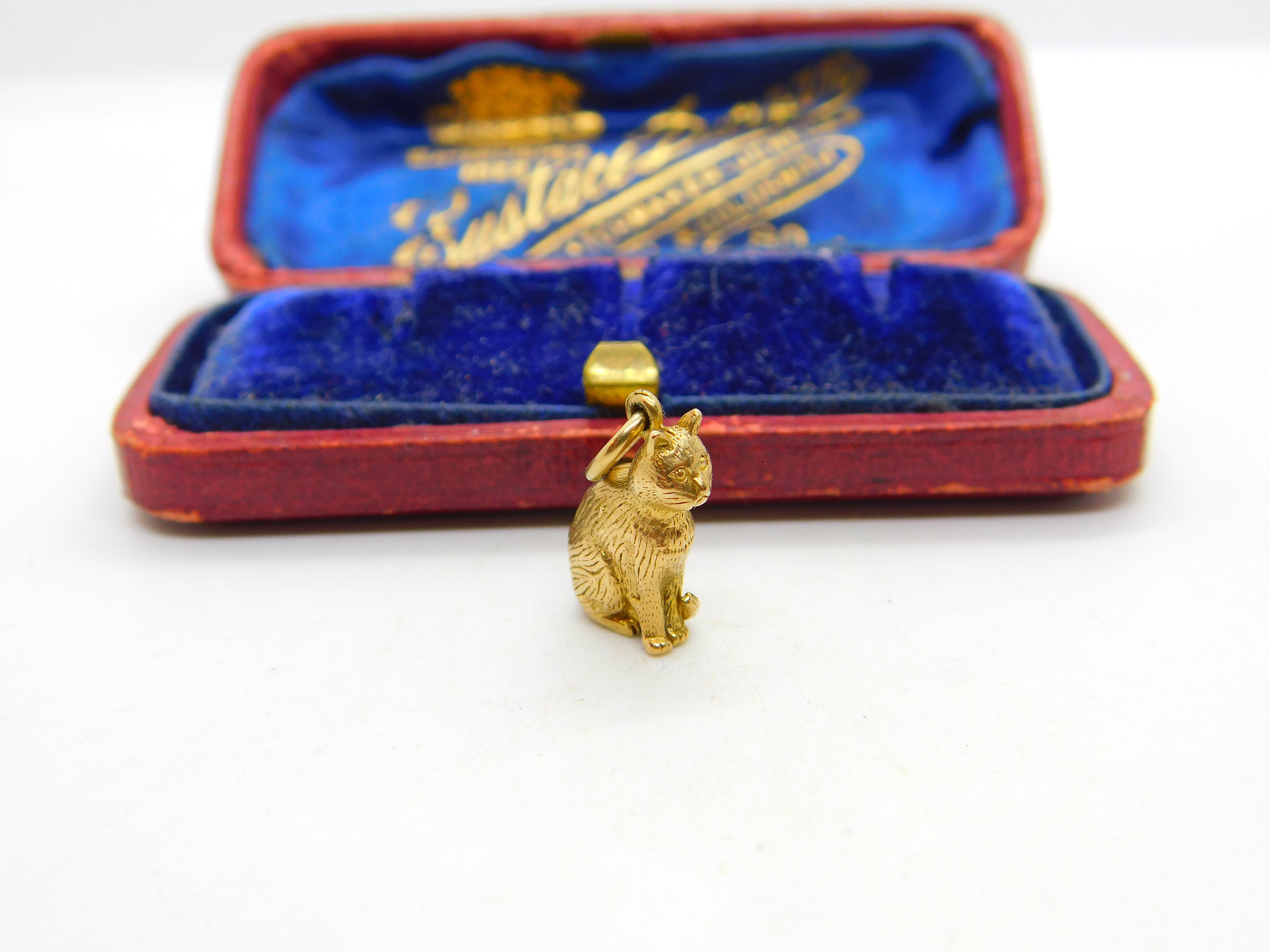 9ct Yellow Gold Sitting Cat or Kitten Charm Pendant 1987 Birmingham Vintage