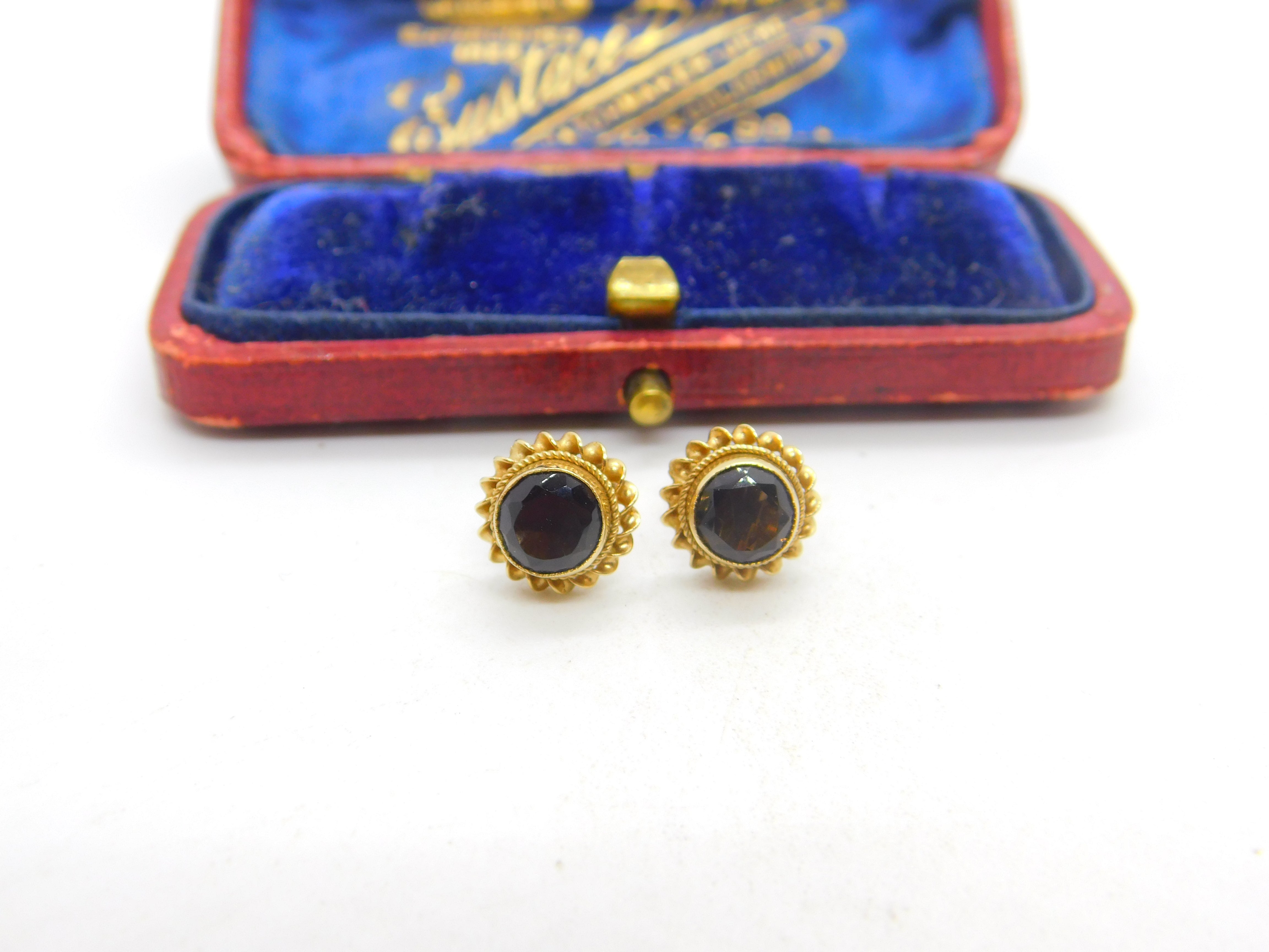 9ct Yellow Gold Smoky Quartz Floral Stud Earrings 1985 Birmingham Vintage