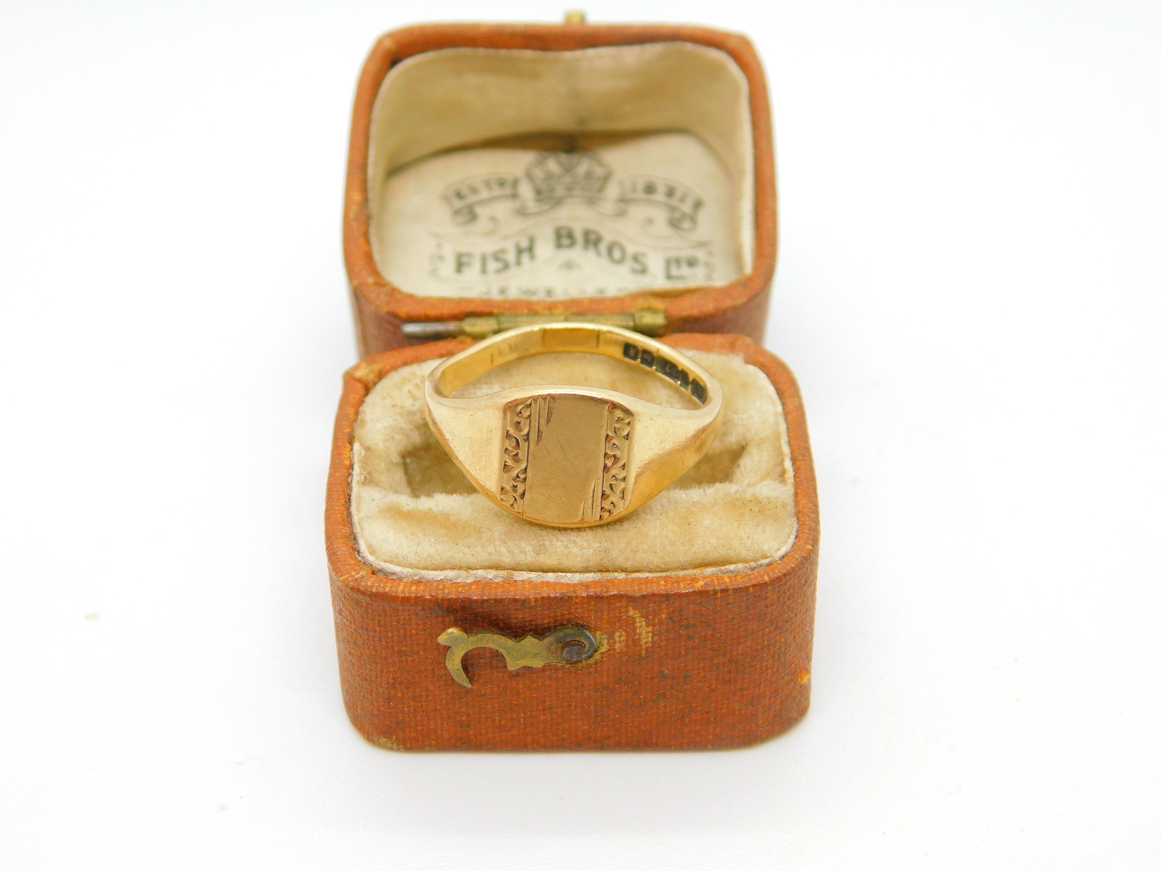 9ct Yellow Gold Signet Ring Vintage 1966 Birmingham Size L UK